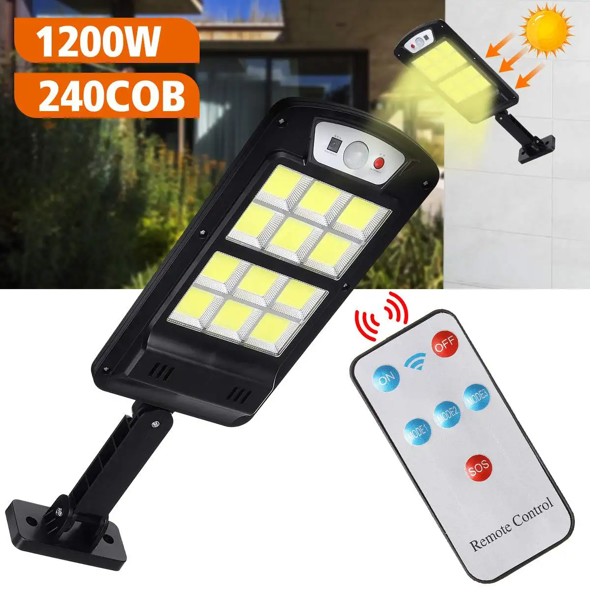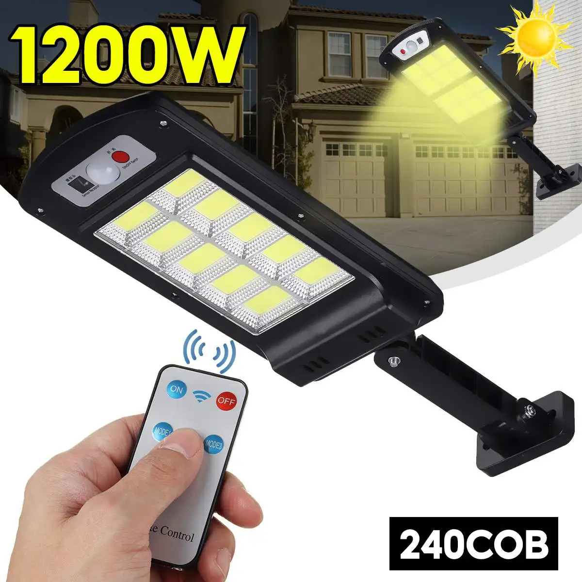 Ультрабольшой уличный светильник с питанием от солнечной батареи, 1200 Вт, 240 COB, водонепроницаемая настенная лампа для безопасности с пассивным ИК датчиком движения, лампа с умным управлением
