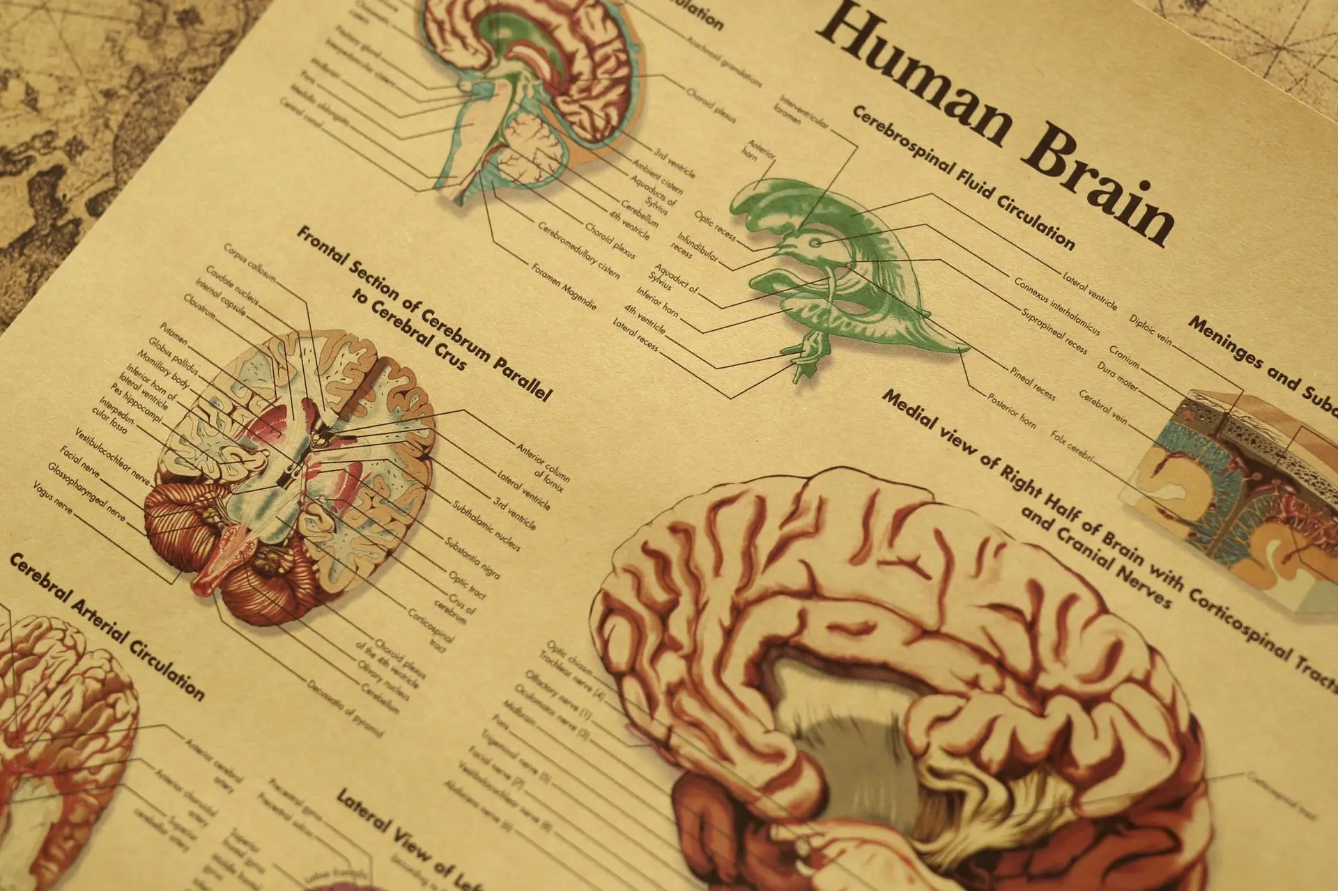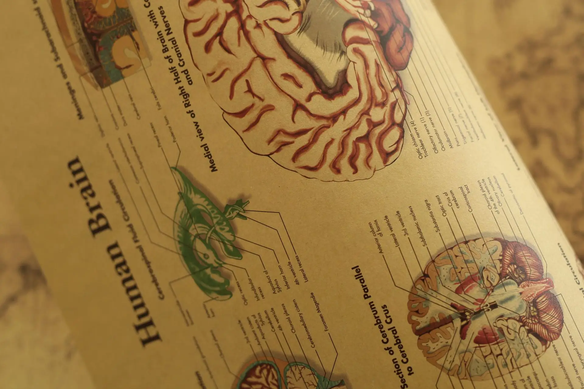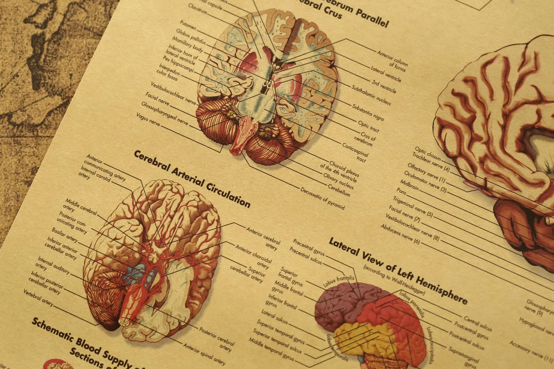 Иллюстрация человеческого тела-мозг крафт-бумага ВИНТАЖНЫЙ ПЛАКАТ классная комната музейное украшение живопись товары для дома