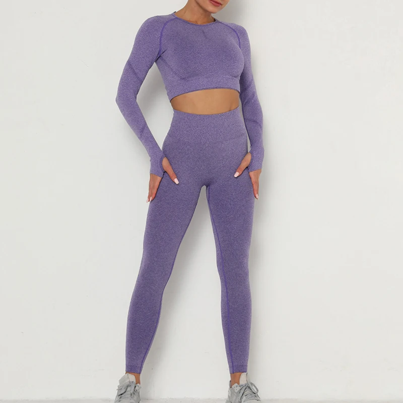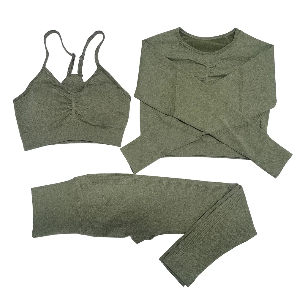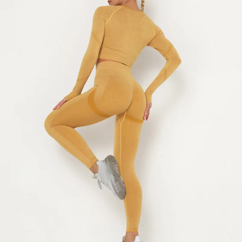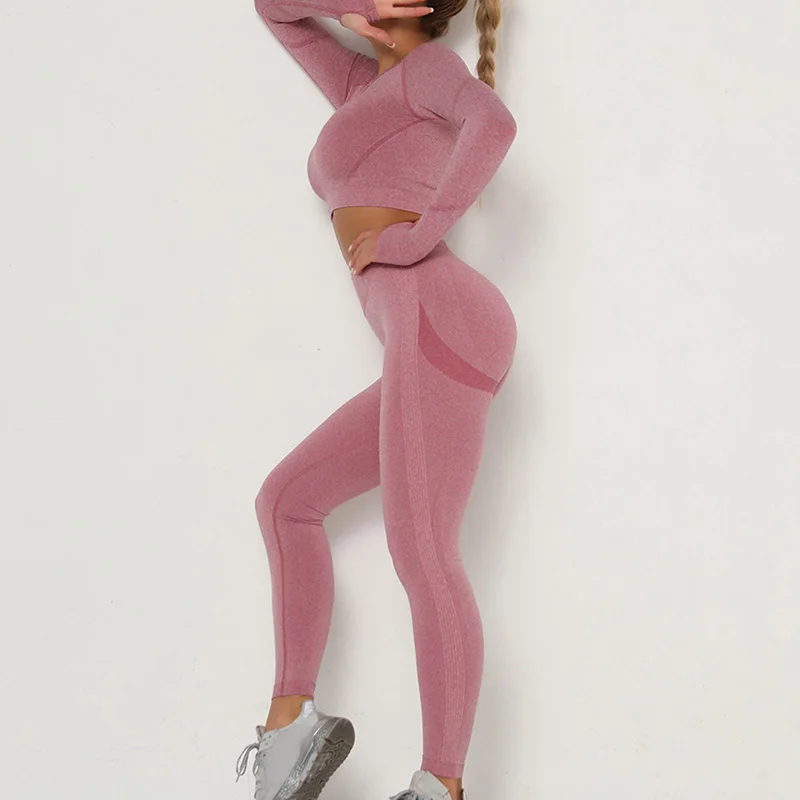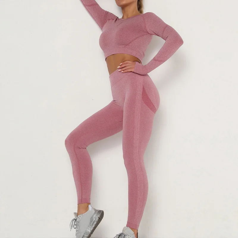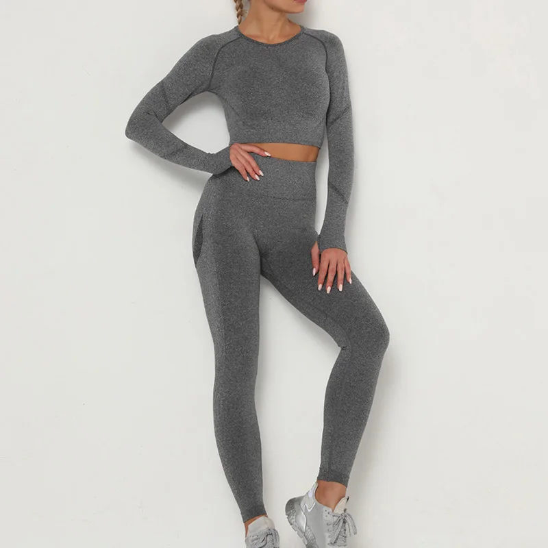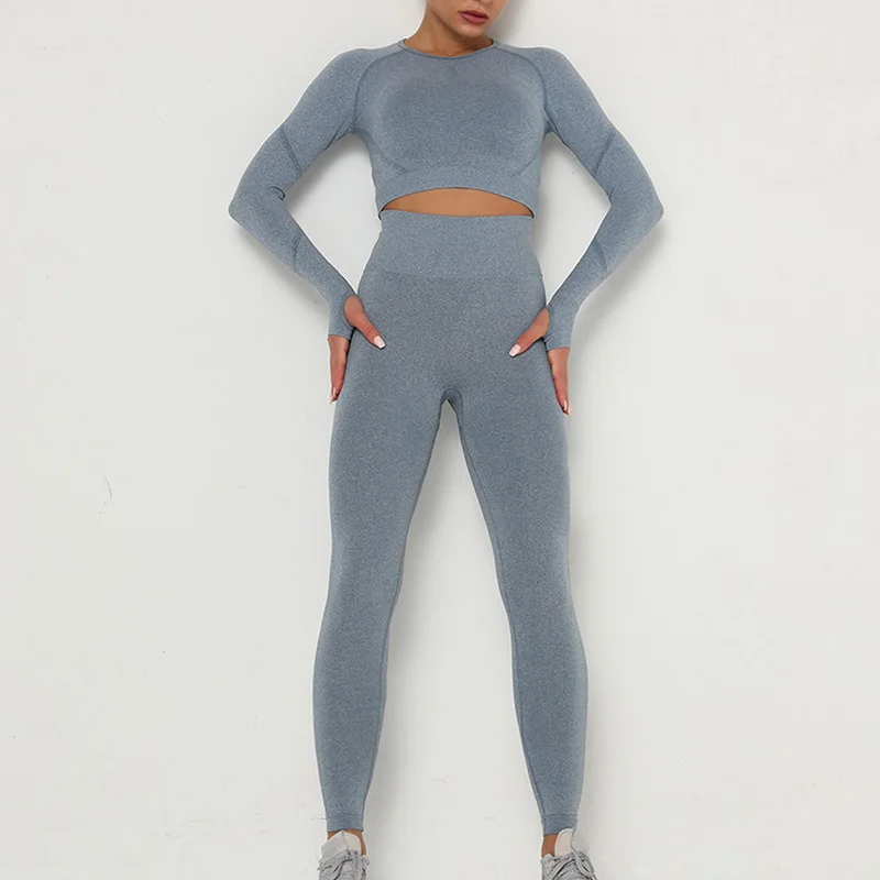 Женская спортивная одежда, комплект для йоги, бесшовные леггинсы с длинным рукавом, укороченный топ, спортивный бюстгальтер, одежда для тренажерного зала, фитнеса, тренировок, бега, спортивный костюм