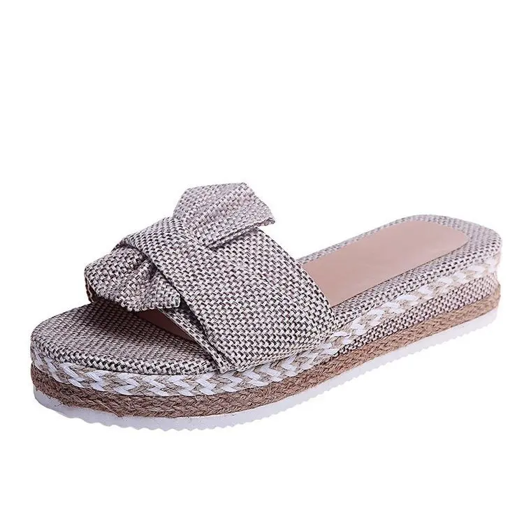 Женские шлепанцы с бантом, летние шлепанцы, сандалии на платформе, 2021, для дома и улицы, пляжные шлепанцы, женская обувь, Тапочки