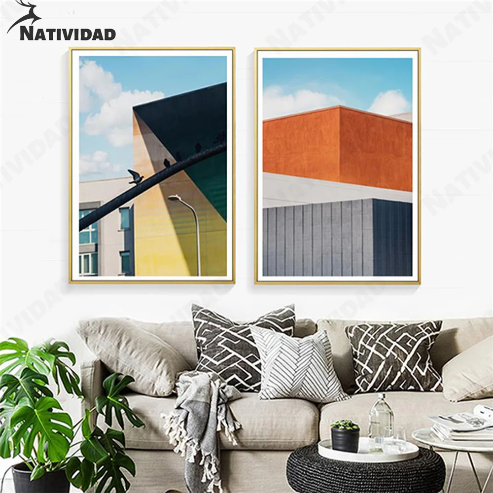 Абстрактный реалистичный архитектурный художественный принт, постер, постмодернизм, яркая масляная живопись, стильный настенный постер, Декор для дома, гостиной