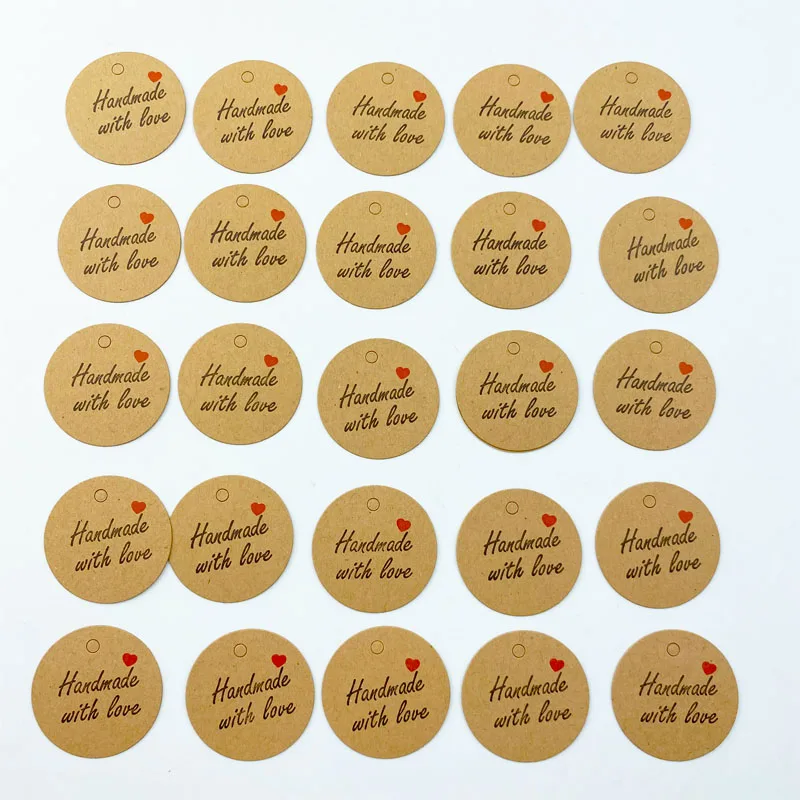 Круглые крафт-бумажные бирки для подарков для выпечки 100 шт., печатные ярлыки для празднования, ярлыки ручной работы, украшения для свадьбы, вечеринки, Упаковочная подвесная бумага