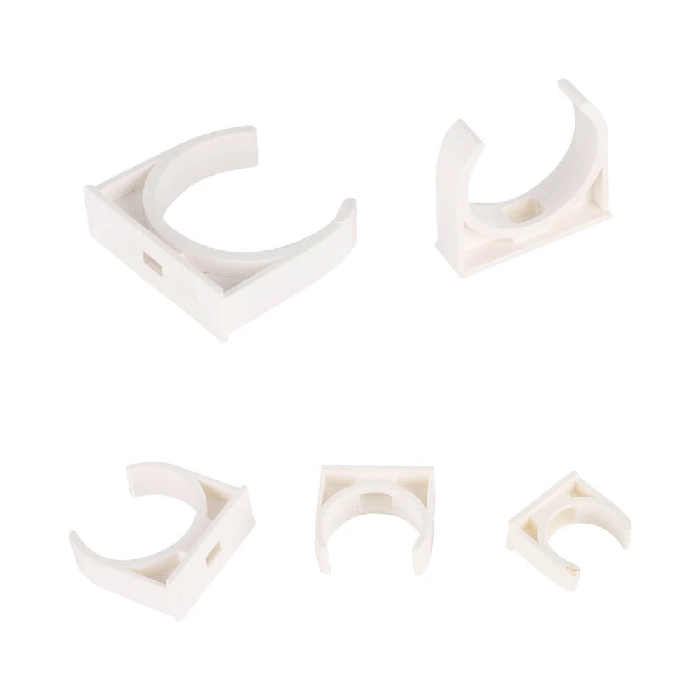Широкое применение-пвх хомут для труб в основном используется для установки водопроводных труб, водопроводных труб, кабельных труб, газовых труб и других фитингов, закрепленных на земле или стене. Подходит для труб OD (прибл.): 20/25/32/40/50 мм.