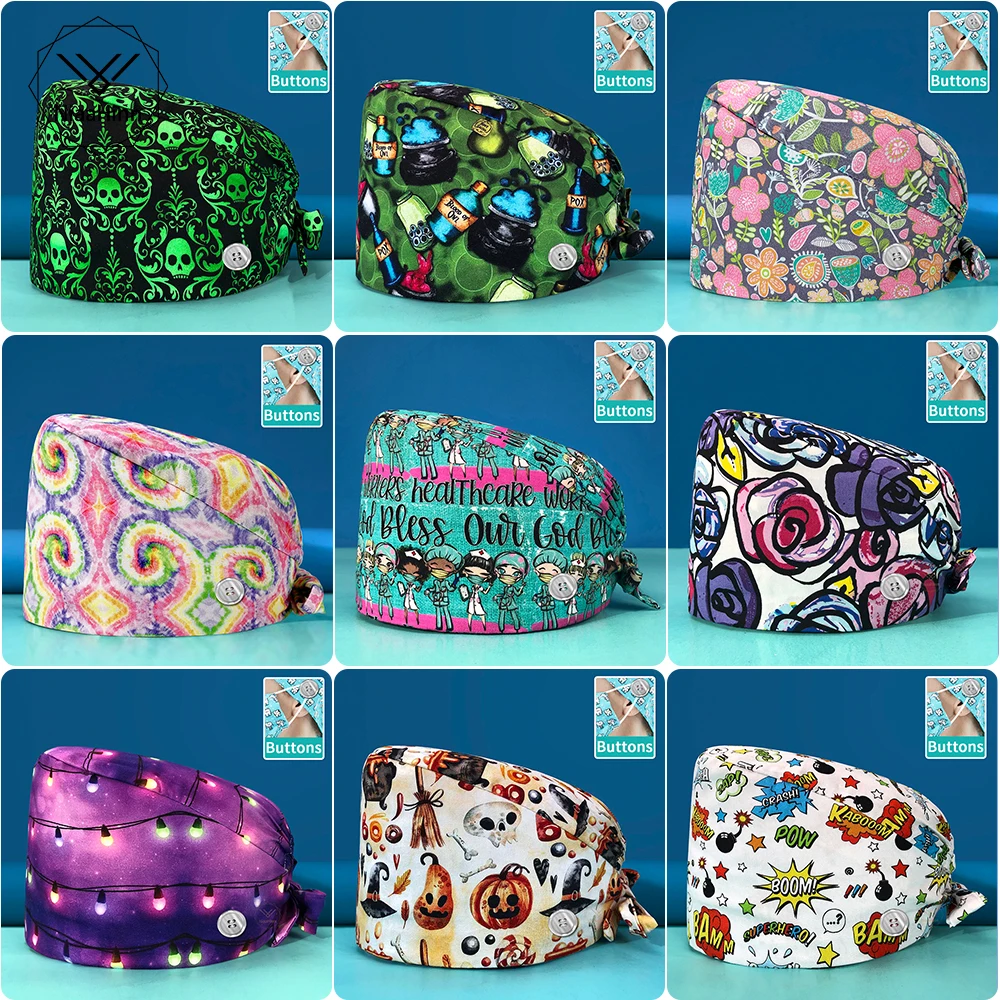 Шапка для медсестры с цветочным узором, регулируемая шапка с разным...