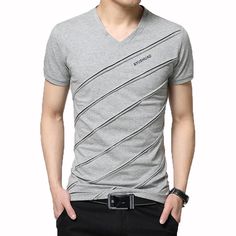 Covrlge, летняя рубашка, Мужская футболка с коротким рукавом, с V-образным вырезом, размера плюс, M-5XL, футболка для фитнеса, уличная одежда, топы, MTS410