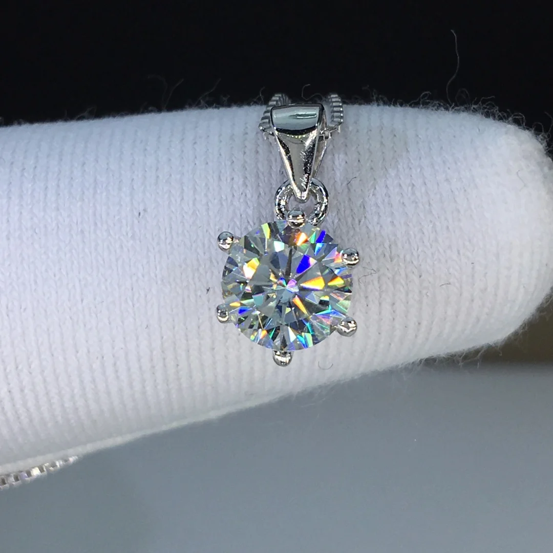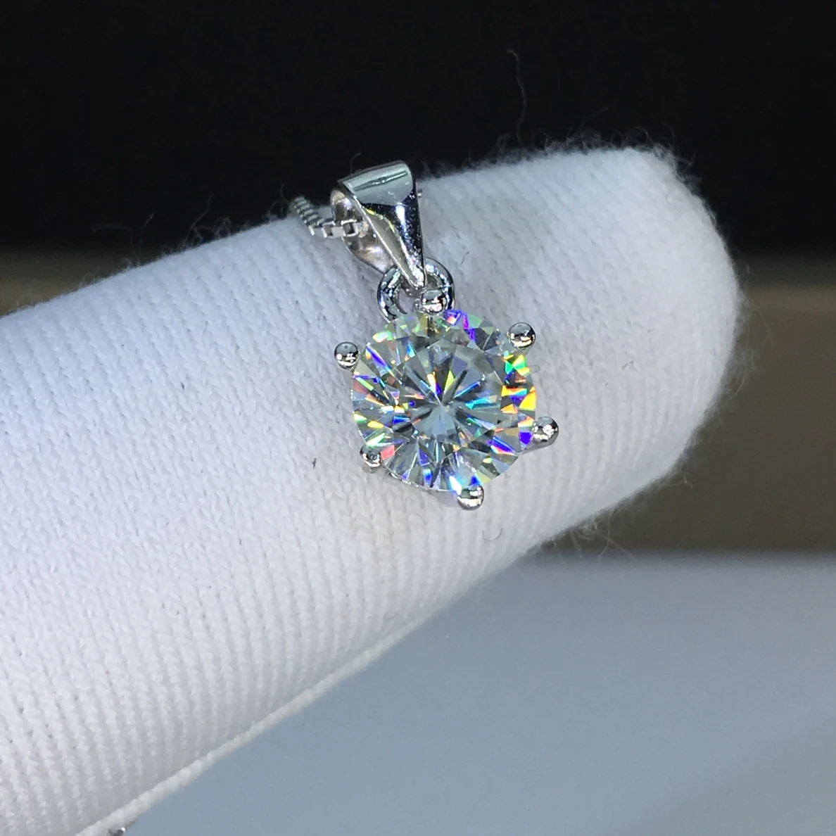 Серебро 925 оригинальные Платиновый круглой бриллиантовой огранки тест 1 карат D Цвет Муассанит подвесное ожерелье классическое цепочка с драгоценными камнями
