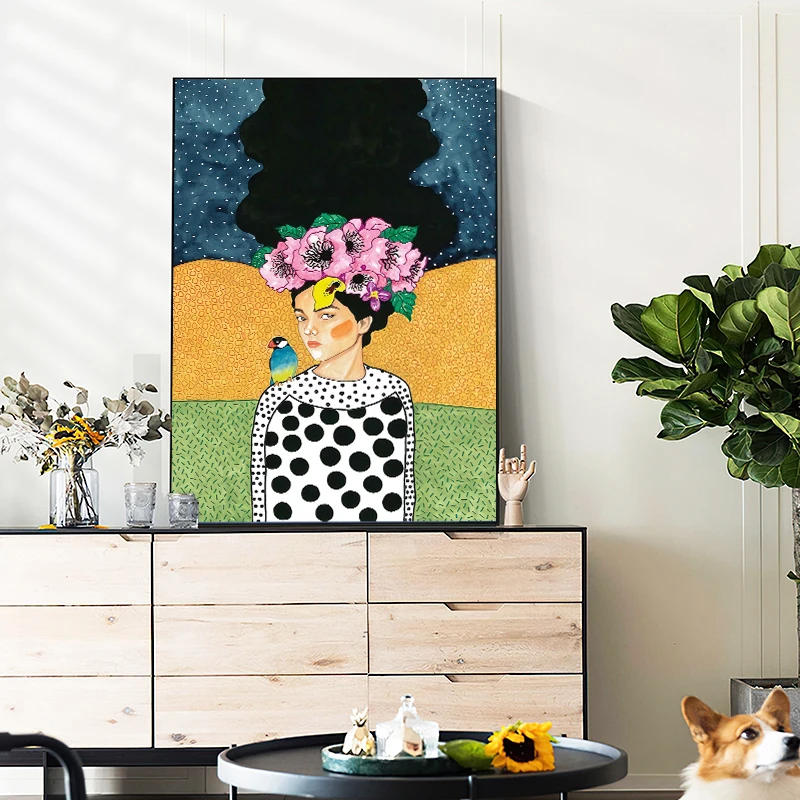 Винтажная девушка волосы цветы аквариум искусство холст печать абстрактная фигурка Настенная картина гостиная домашний декор плакат