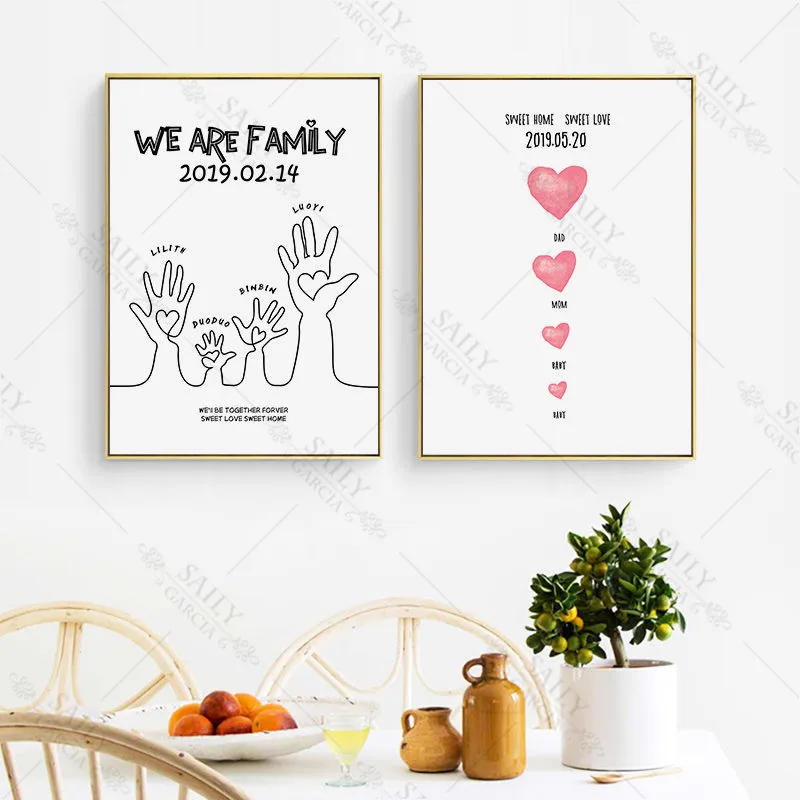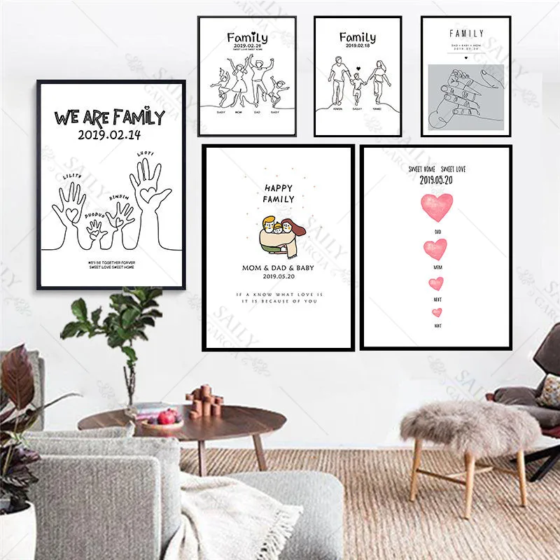 Картина на холсте милая семья, постеры с изображением даты, имени, подарка сделай сам на годовщину, мультяшный Милый принт, домашний декор для гостиной