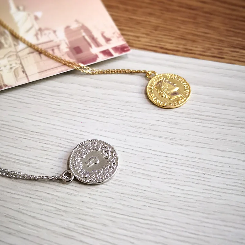 Диск ожерелье Элизабет медальон ожерелье в римском стиле монета ожерелье, многослойное колье, ожерелье, платье подружки невесты, подарок на день рождения