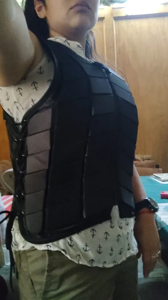 Хороший жилет, на размер 50 взяла L, пришлось максимально затянуть шнуровку. Сидит удобно, не мешает