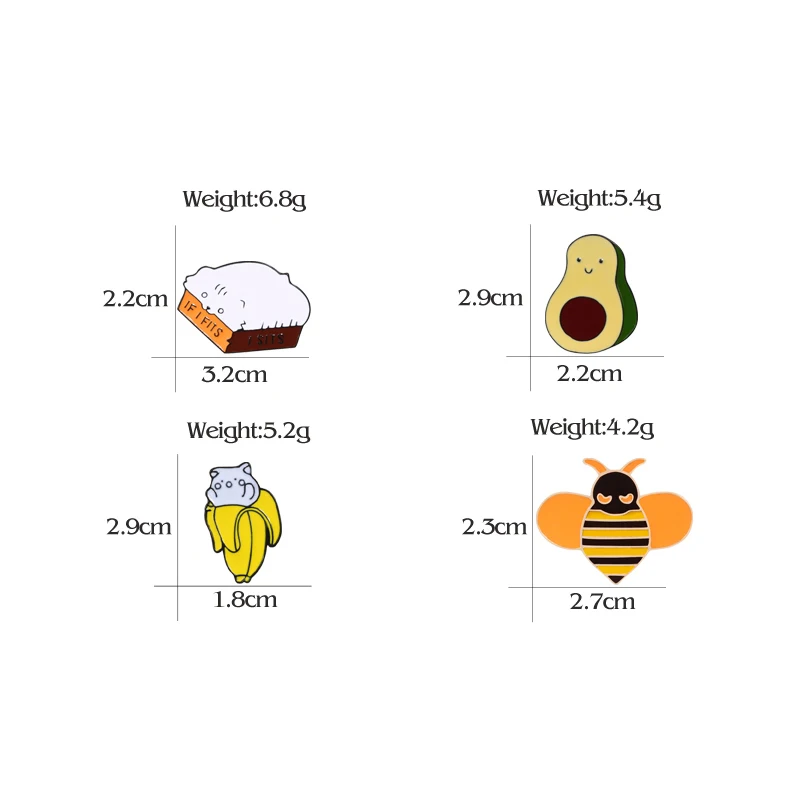 Броши на лацкан с изображением авокадо, хлеба, банана, кошки, пчелы