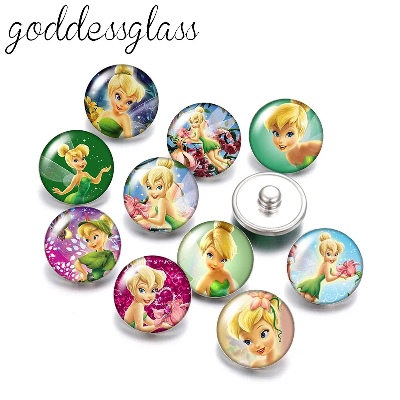 Disney платье принцессы Динь-Динь крылья 10 шт. Круглый Фото 18 мм кнопки для 18 мм Оснастки ожерелье, сделай сам, ювелирное изделие