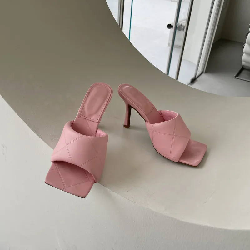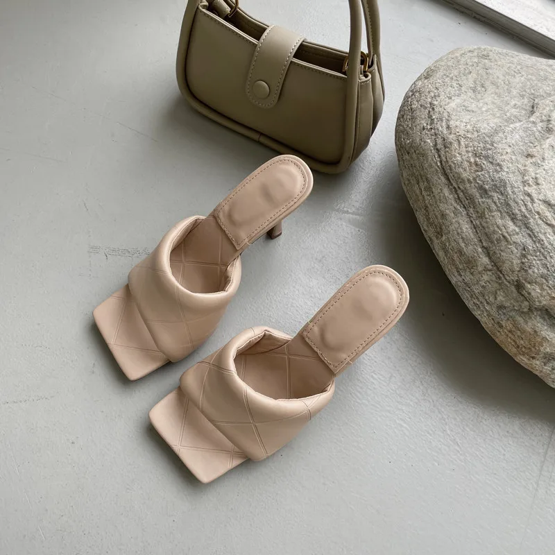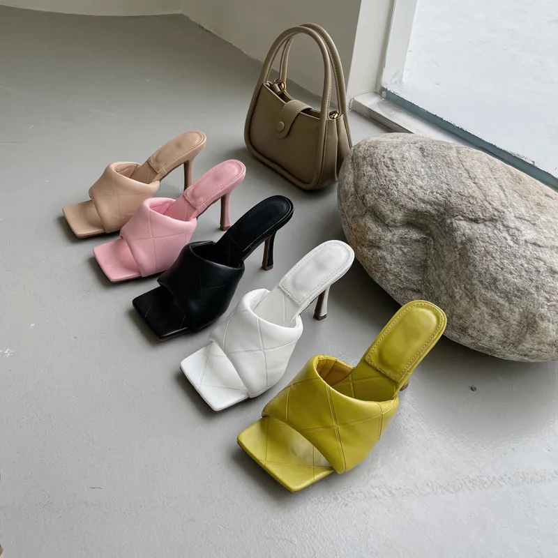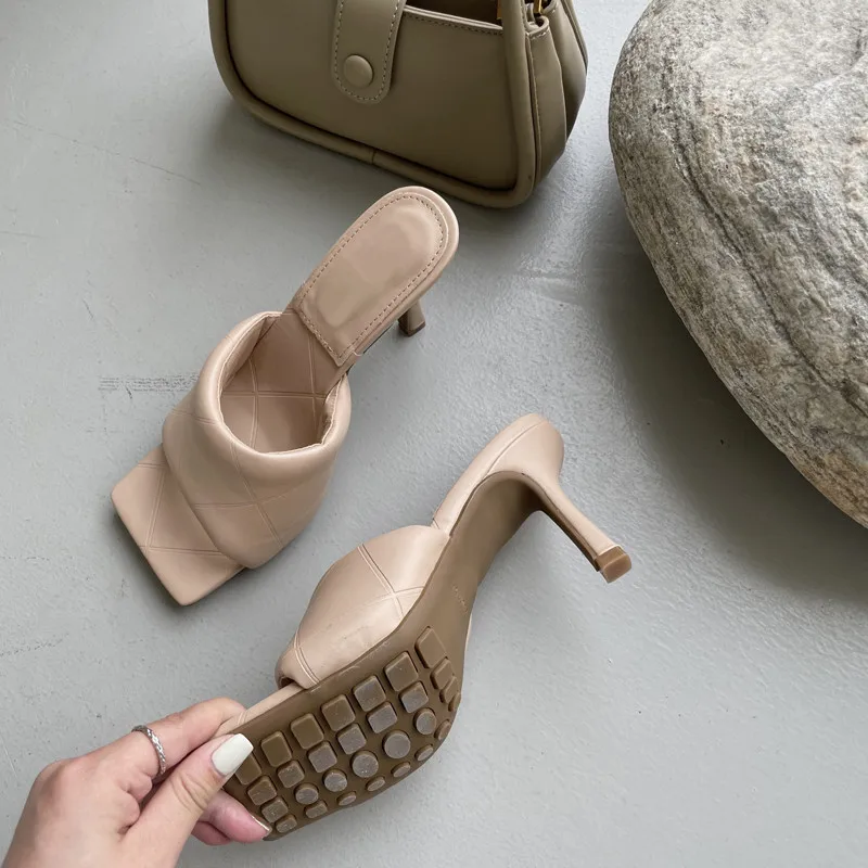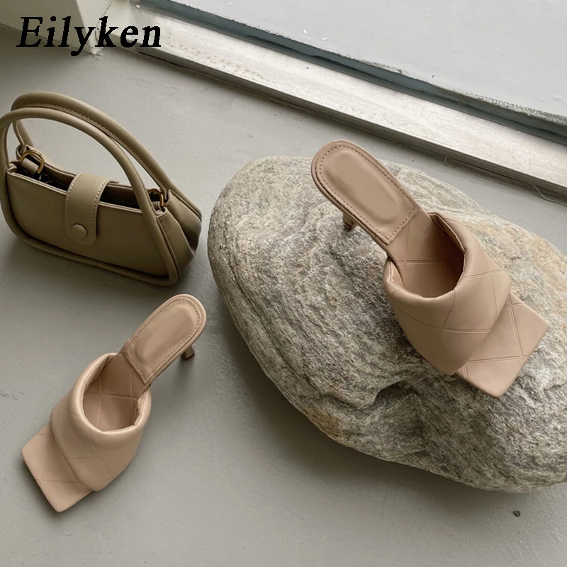 EilykenКоллекция 2022 года; Фирменный дизайн; Женские шлепанцы; Элегантные летние пляжные шлепанцы с квадратным носком на высоком тонком каблуке; Женские босоножки