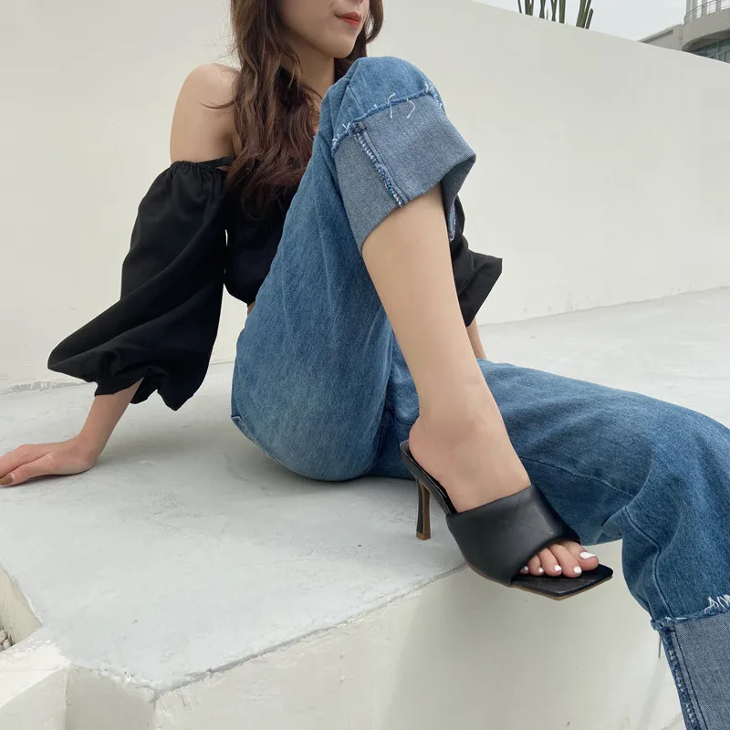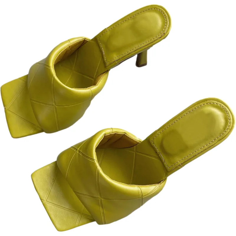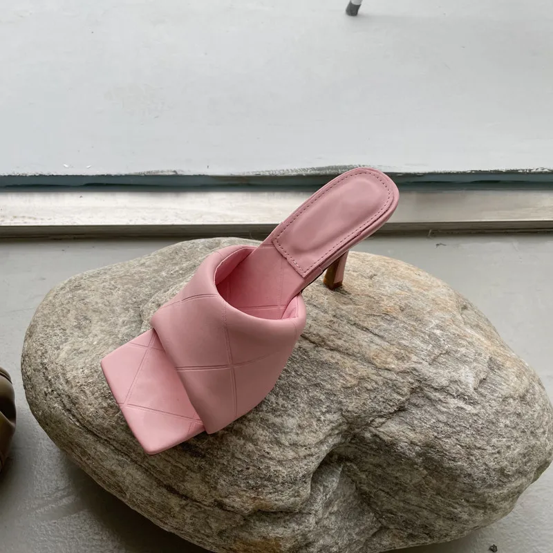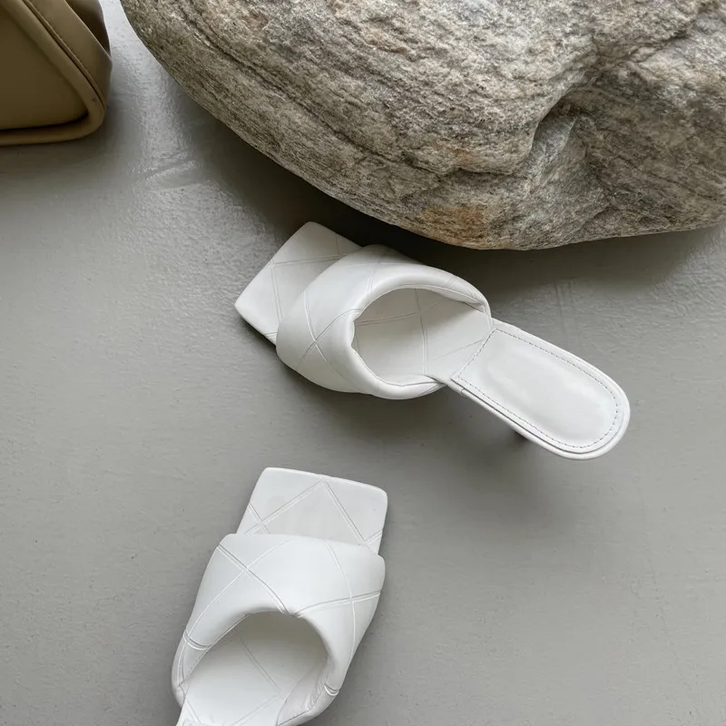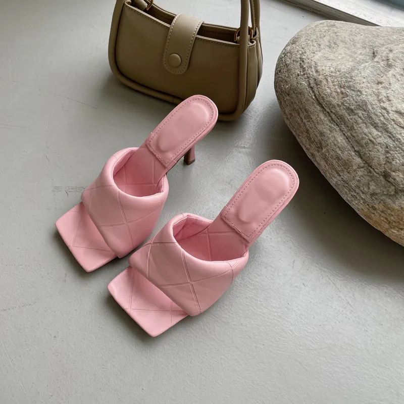 EilykenКоллекция 2022 года; Фирменный дизайн; Женские шлепанцы; Элегантные летние пляжные шлепанцы с квадратным носком на высоком тонком каблуке; Женские босоножки