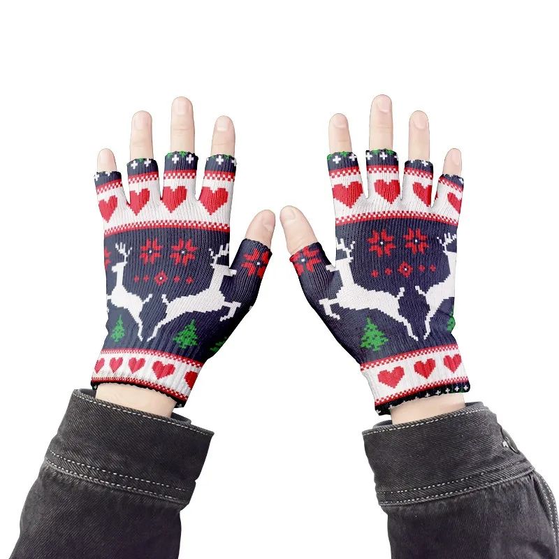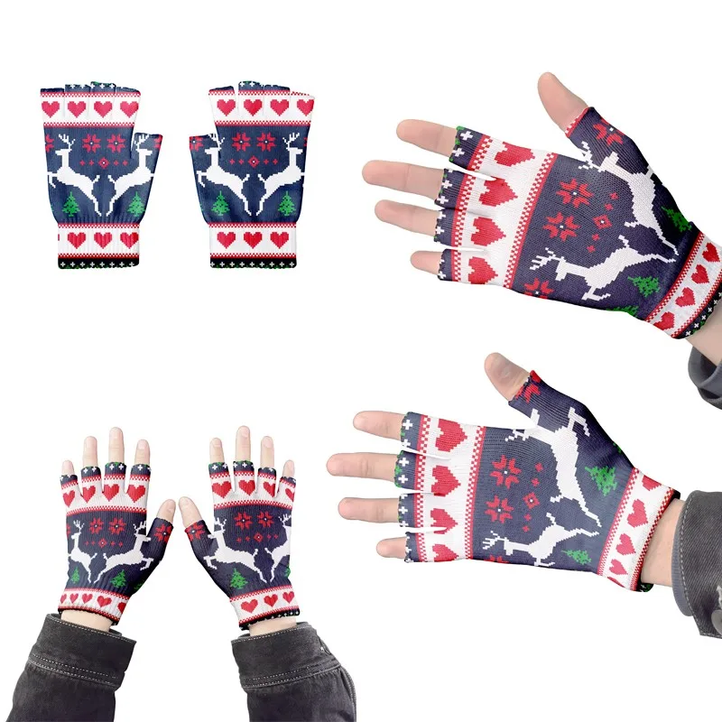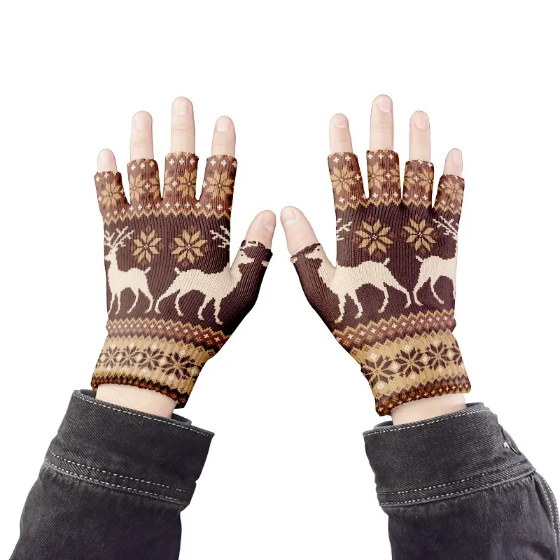 Модные Митенки на полпальца, вязаные женские перчатки с мультяшным оленем и снежинкой, эластичные рабочие мужские перчатки для сенсорного экрана, перчатки