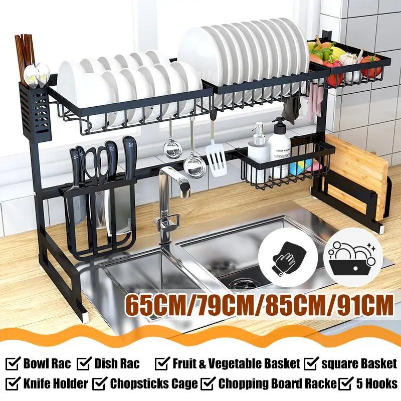 Кухонный Органайзер 65 см79 см85 см91 см, над сливной полкой из нержавеющей стали, держатель для посуды, сушилка для раковины
