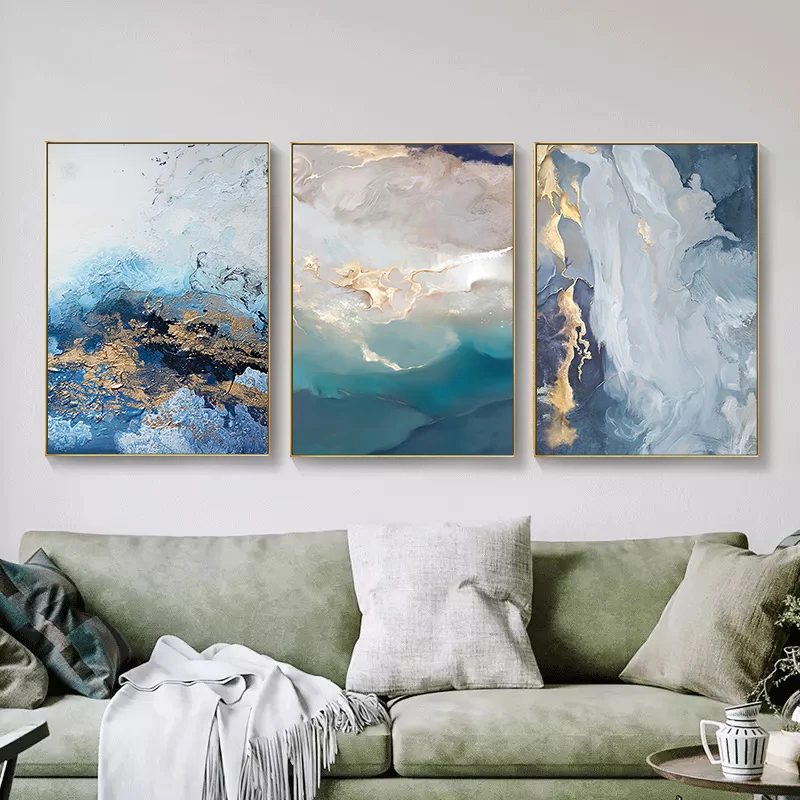 Современный абстрактный постер на холсте, синяя мраморная волна, настенная живопись для гостиной, Декор, скандинавские плакаты и принты, настенные картины