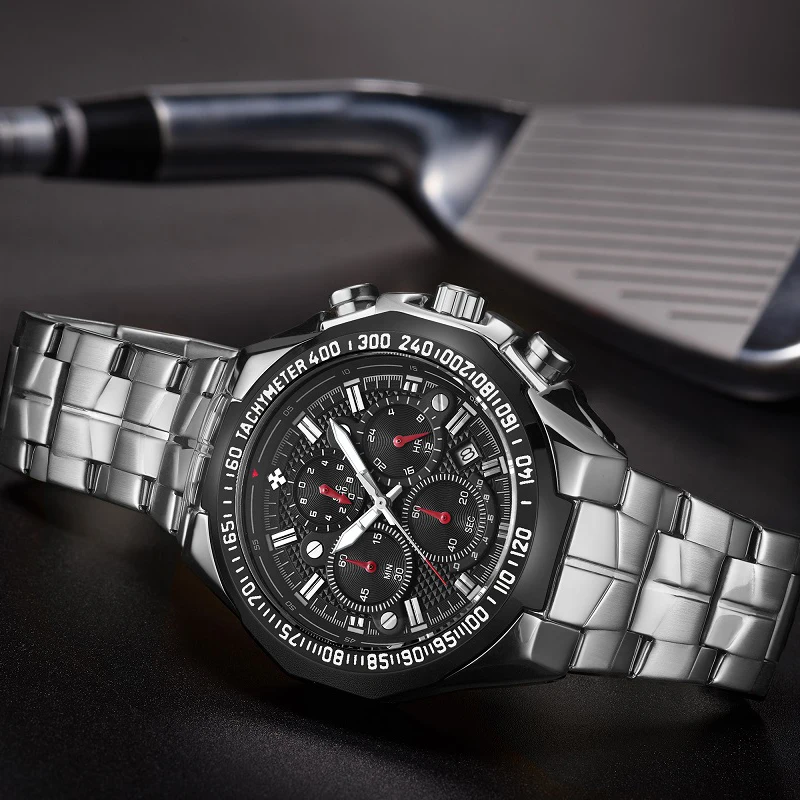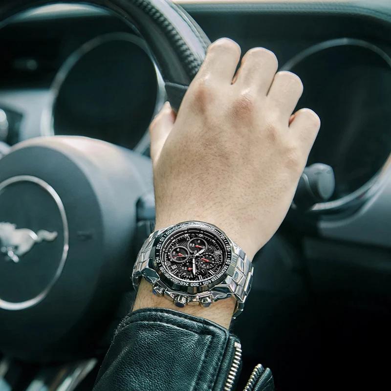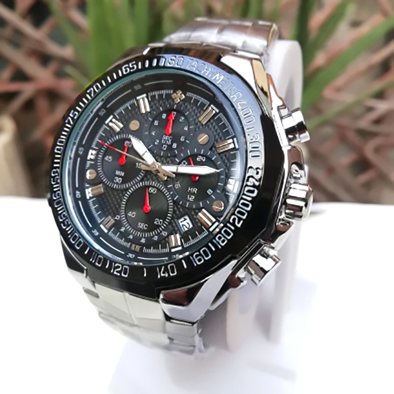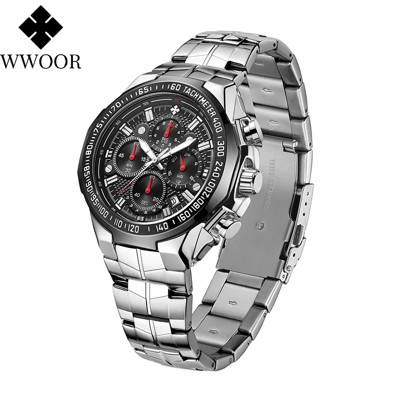 Часы наручные WWOOR Мужские кварцевые с хронографом, брендовые Роскошные модные спортивные стальные, черные, 2021