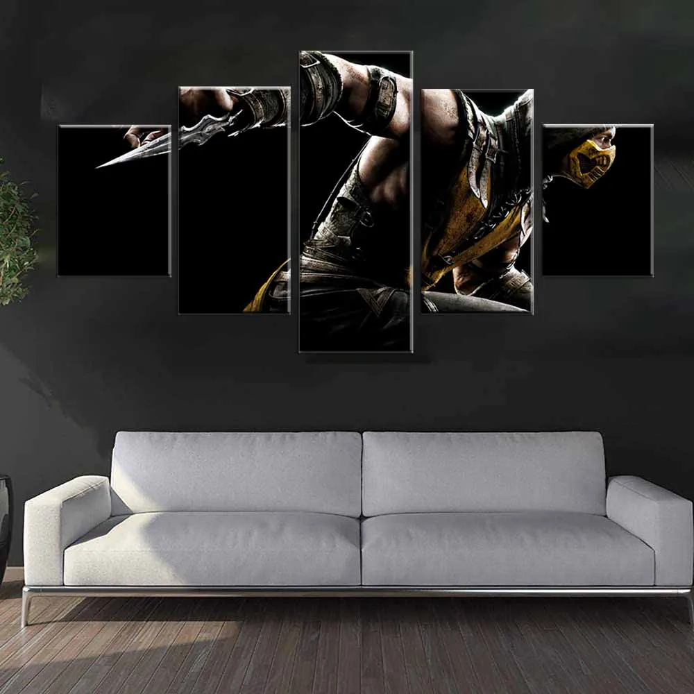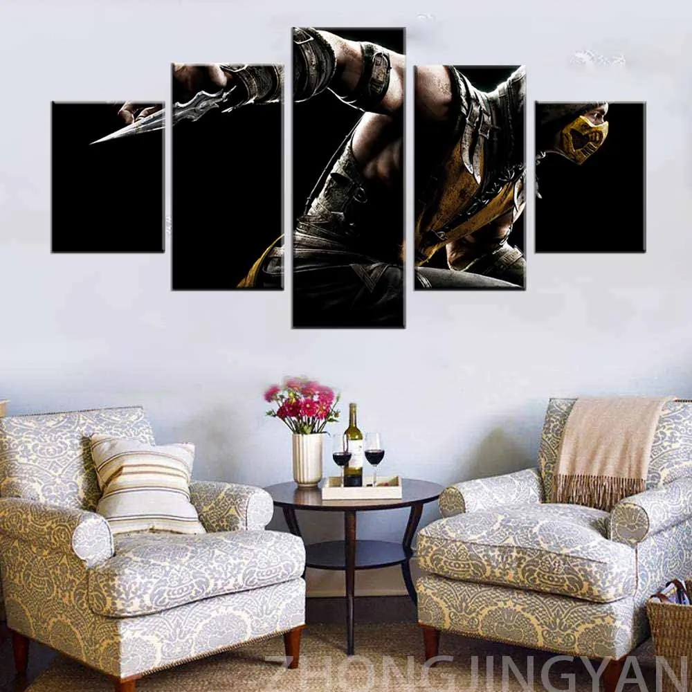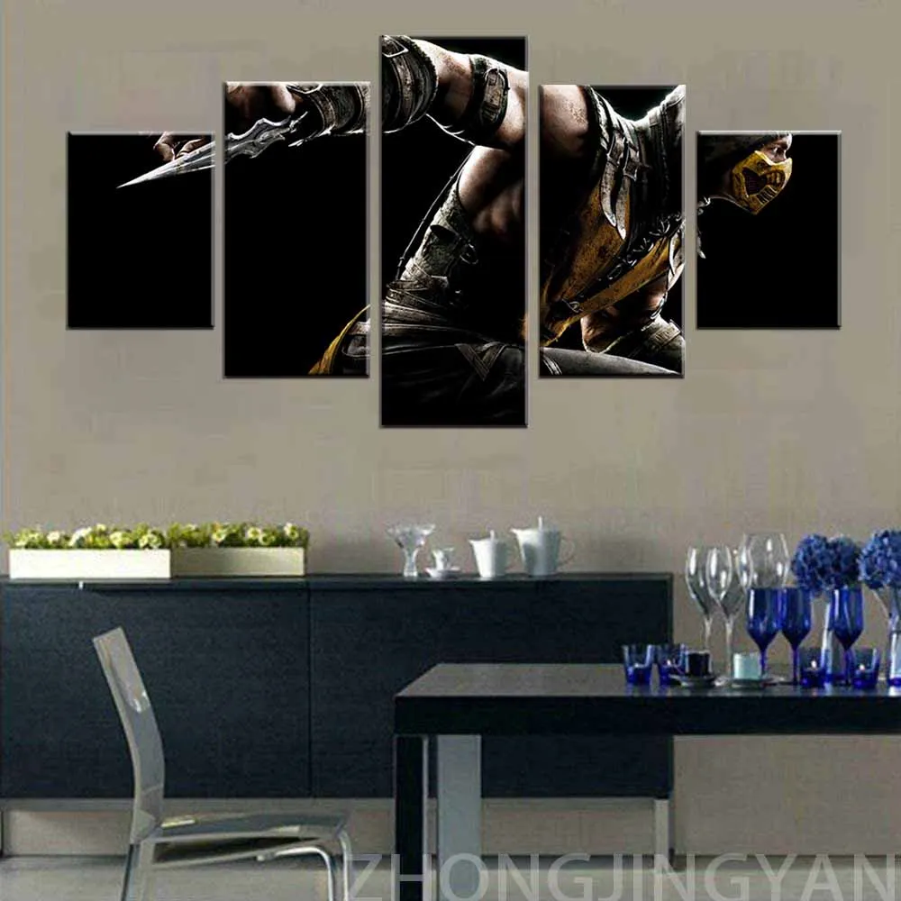 HD печатная Картина на холсте Mortal Kombat X Scorpion, картины на стену для гостиной, рамка, 5 шт. плакатов, модульные картины