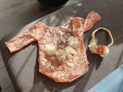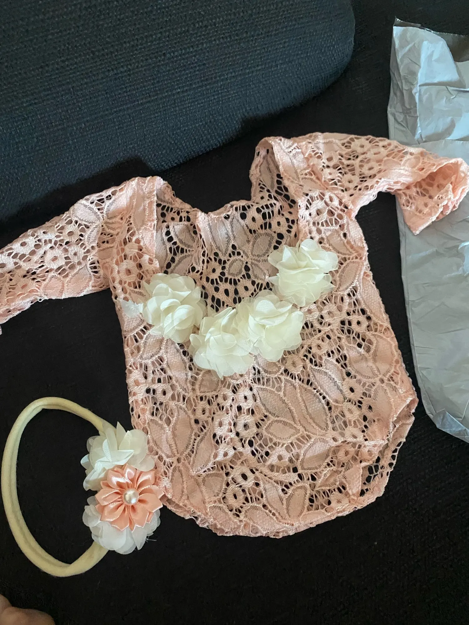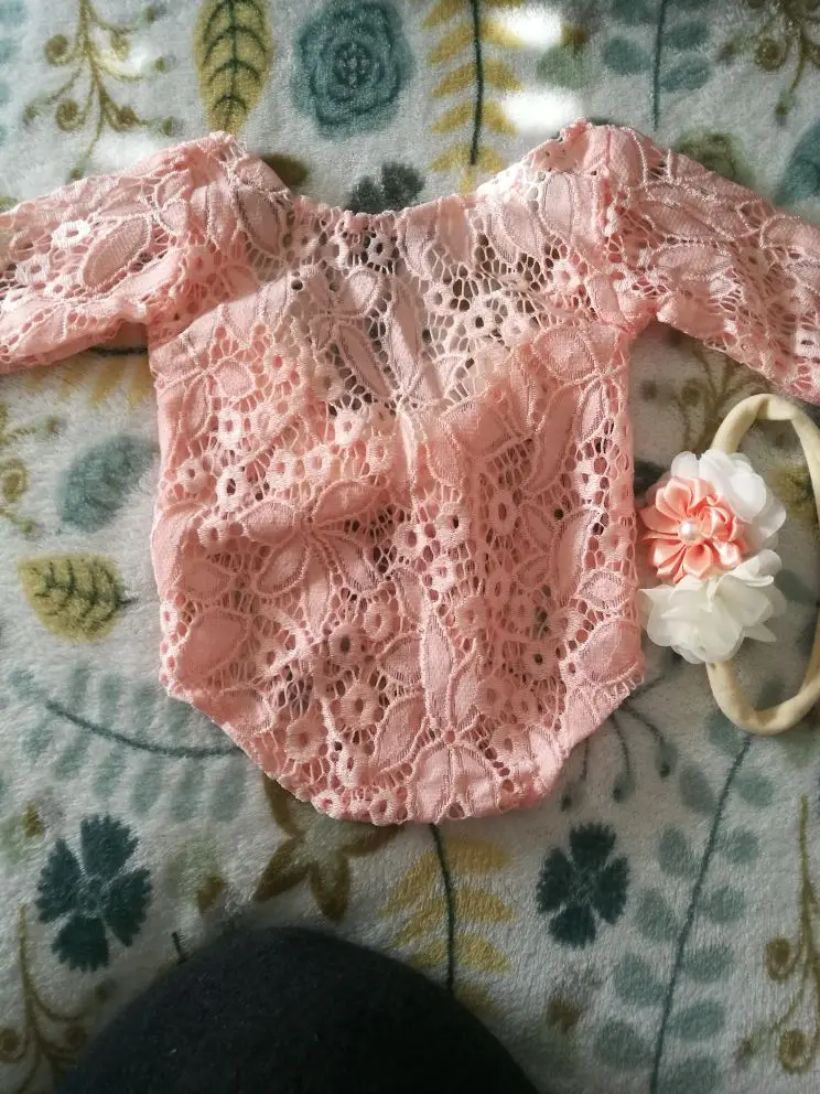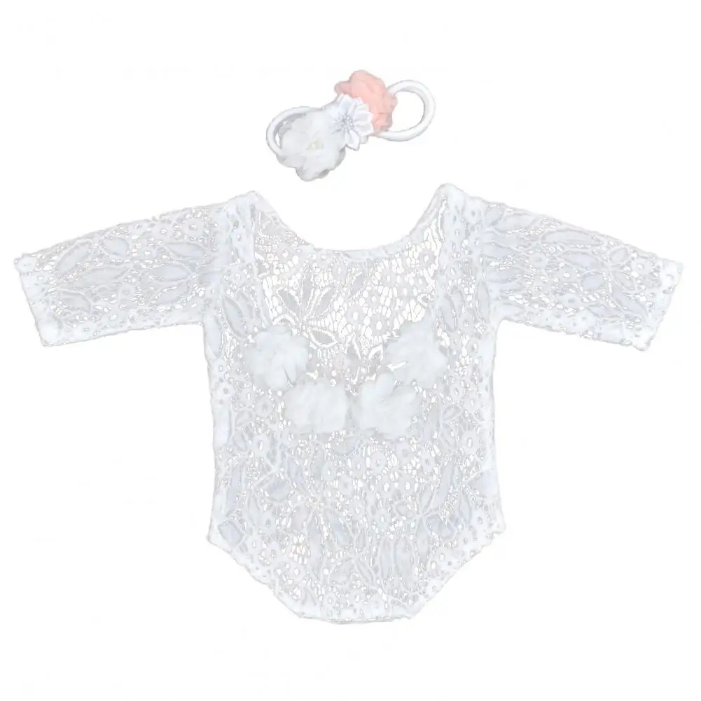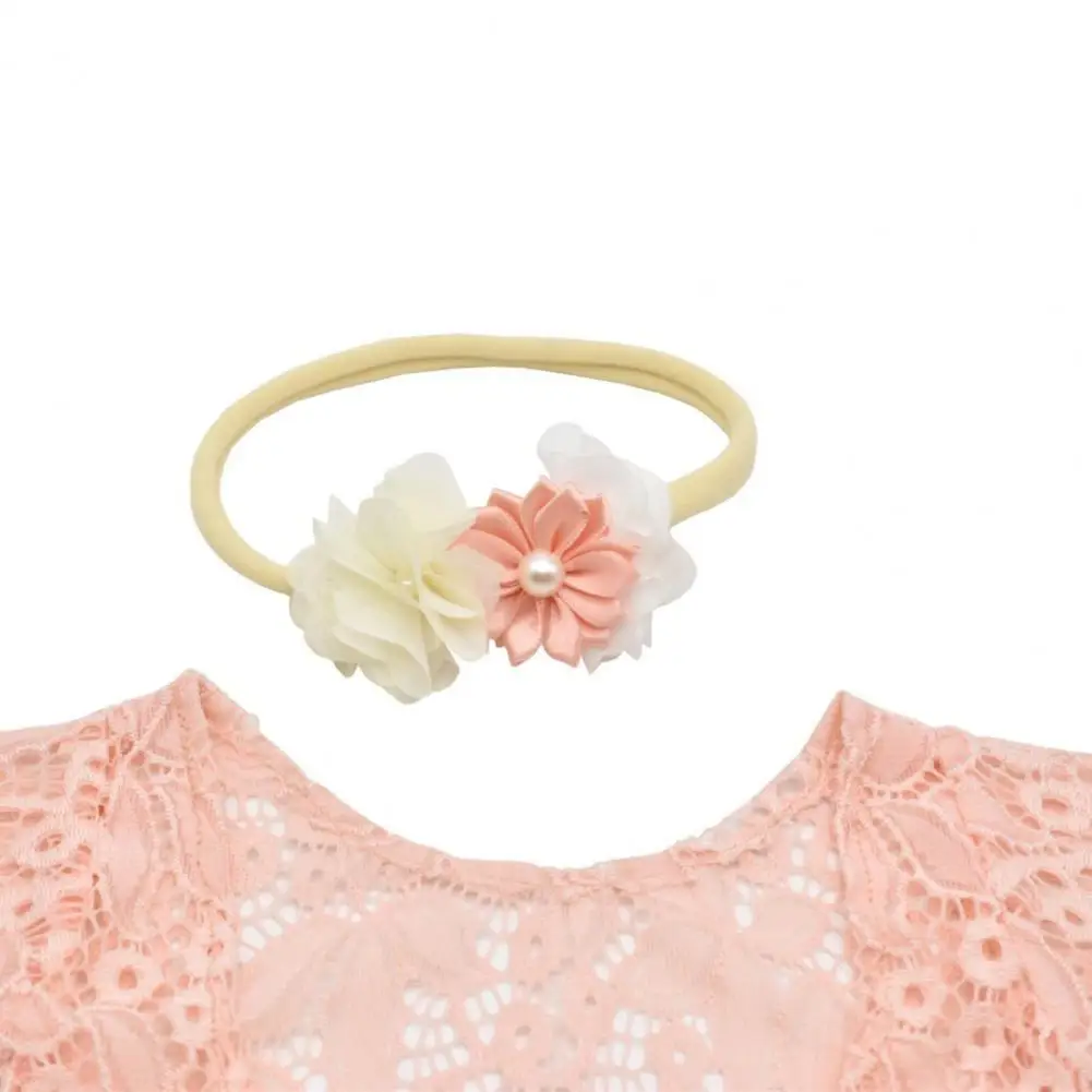 Комбинезон кружевной с открытой спиной и бантом, для новорожденных, детский ободок с цветами