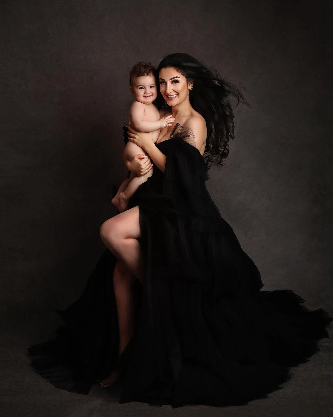 Классический черный тюлевый халат для беременных без бретелек Длинные плиссированные платья Rxtra из пушистого тюля для беременных с разрезом