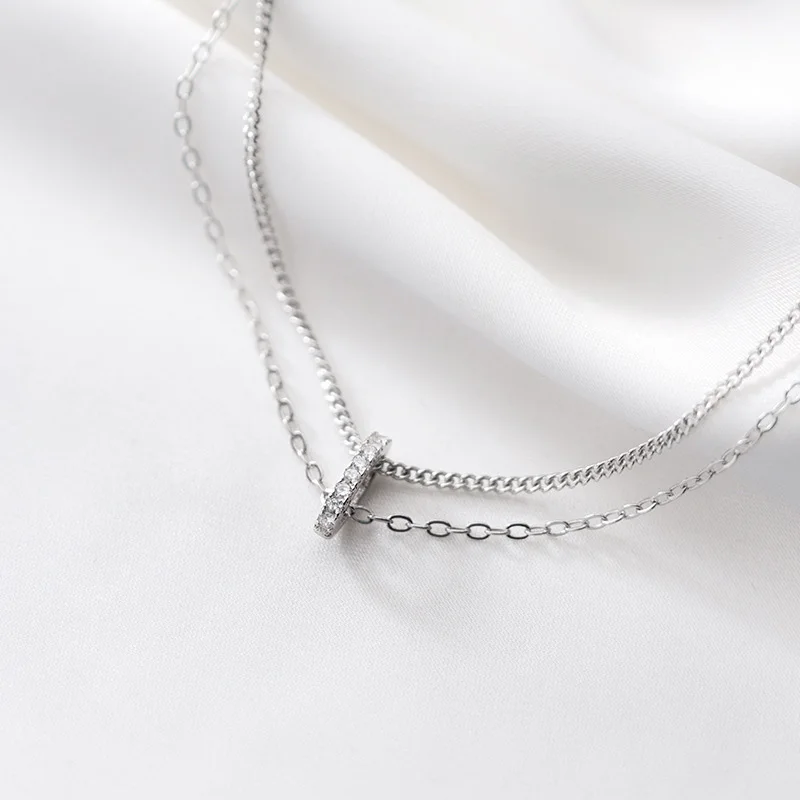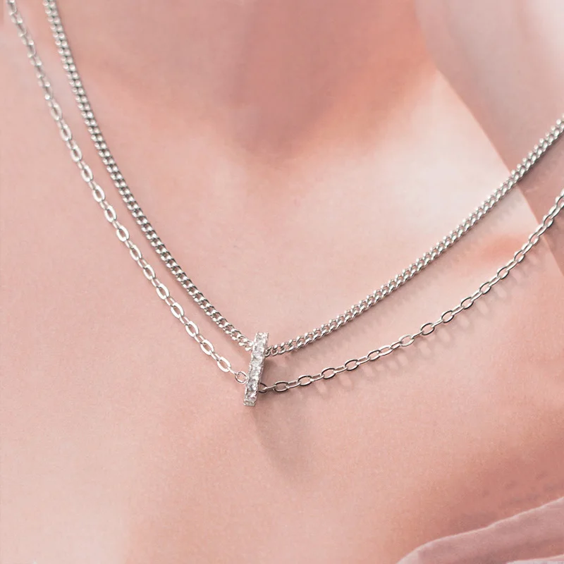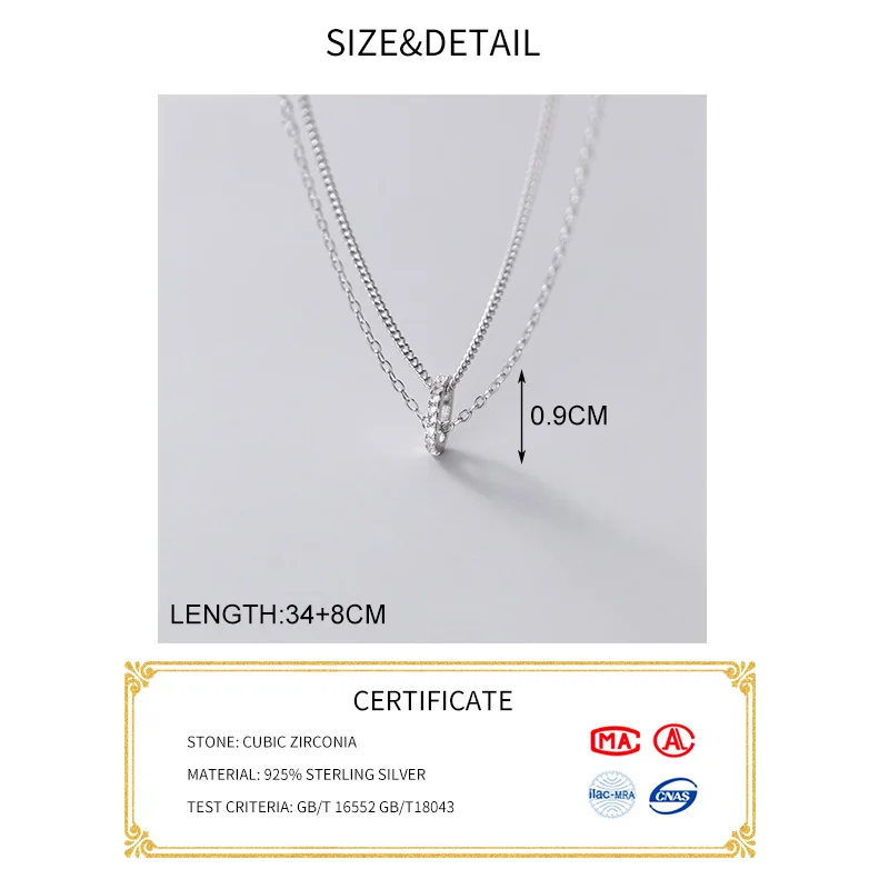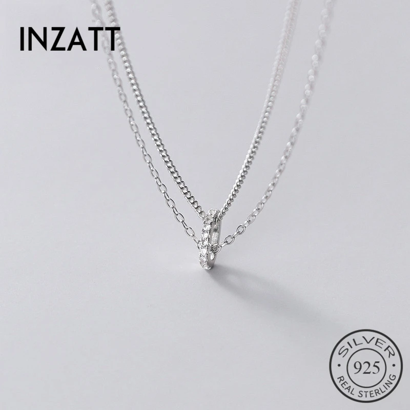 INZATT реальные 925 Стерлинговое Серебро Циркон Круглой Формы двойная цепочка колье-ошейник для Модные женские вечерние ювелирные украшения аксессуары