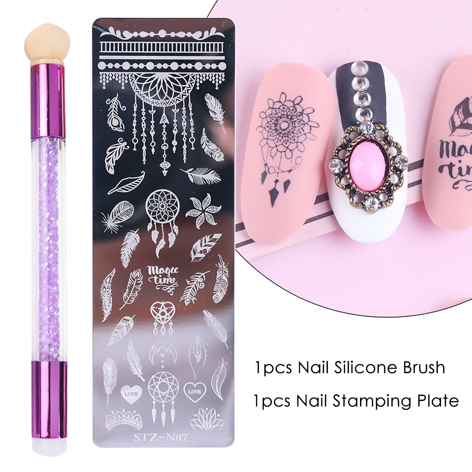 Модные наборы кистей для штамповки ногтей модные красивые дизайны изображений для полировки высококачественные шаблоны для стемпинга ногтей перед использованием штамповки ногтей, удалите пленку.
