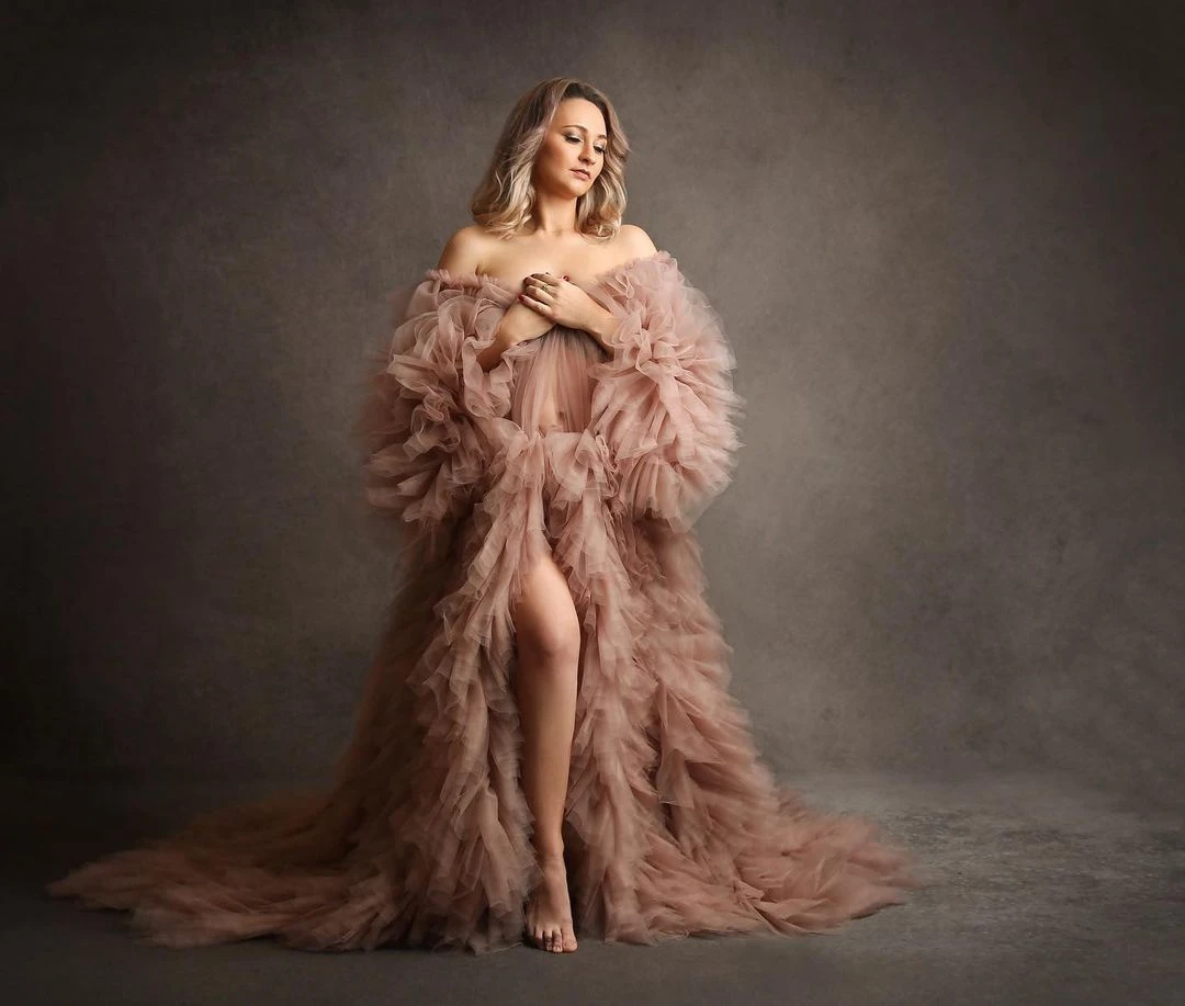 Очаровательные длинные фатиновые платья для беременных для фотосесс...