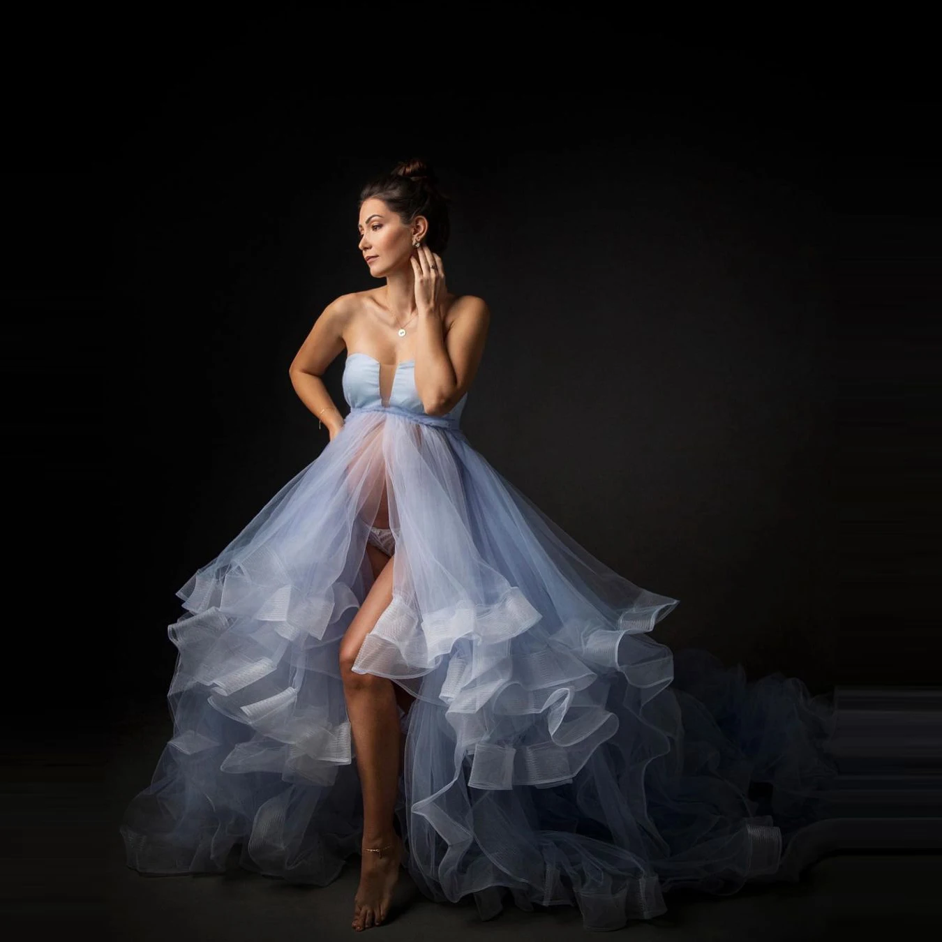 Экстра пышные тюлевые платья для беременных без бретелек, с разрезом, свадебные платья для беременных, для фотосессии