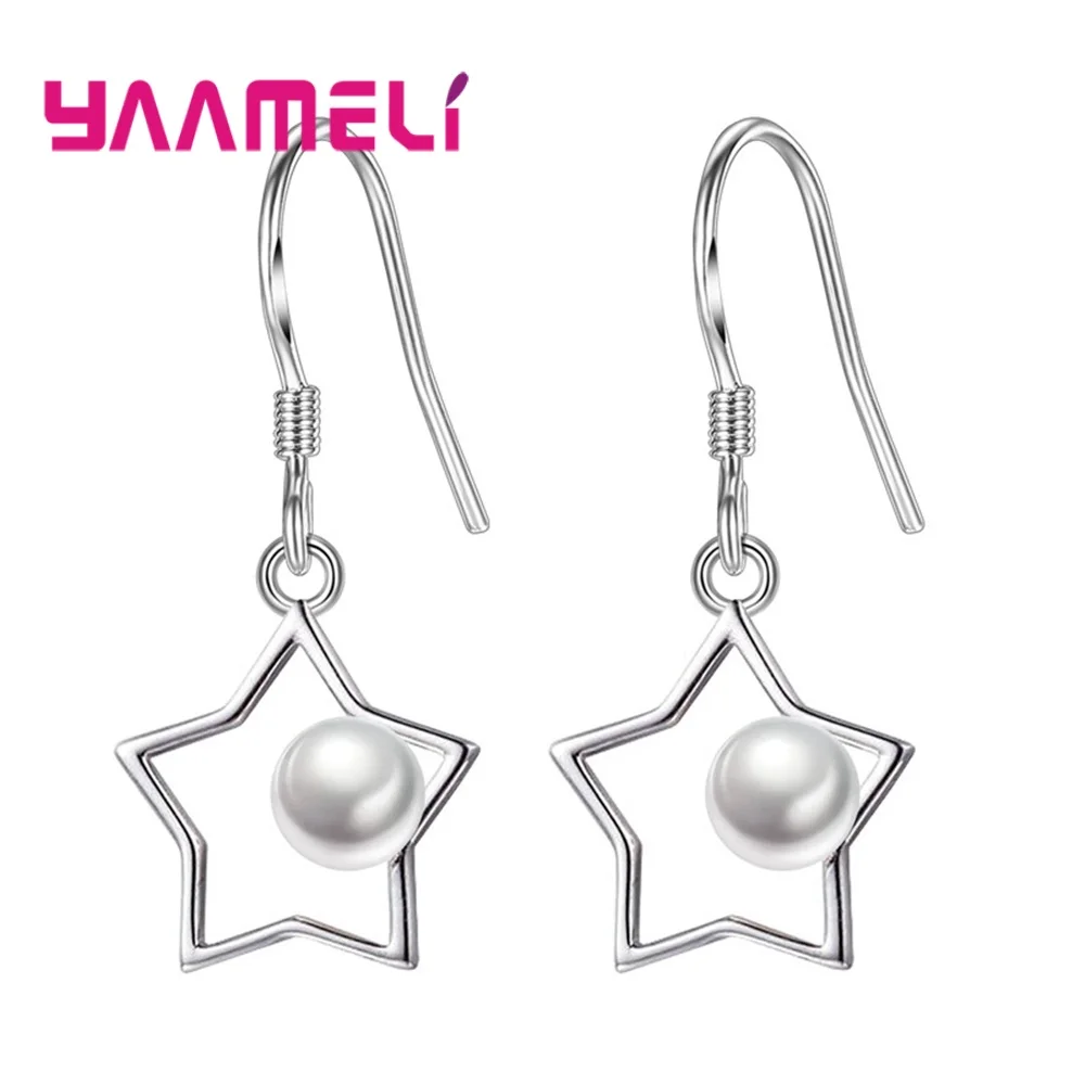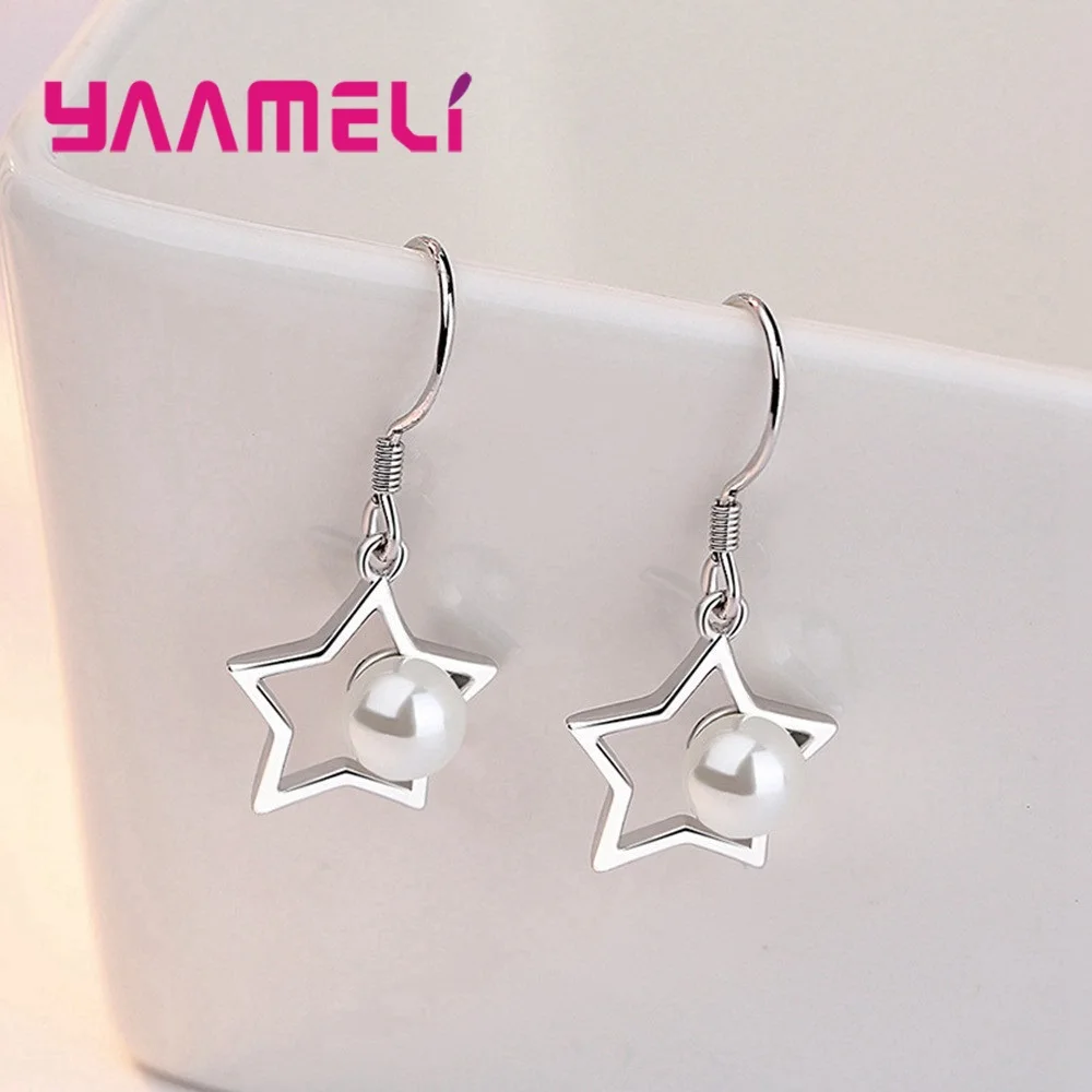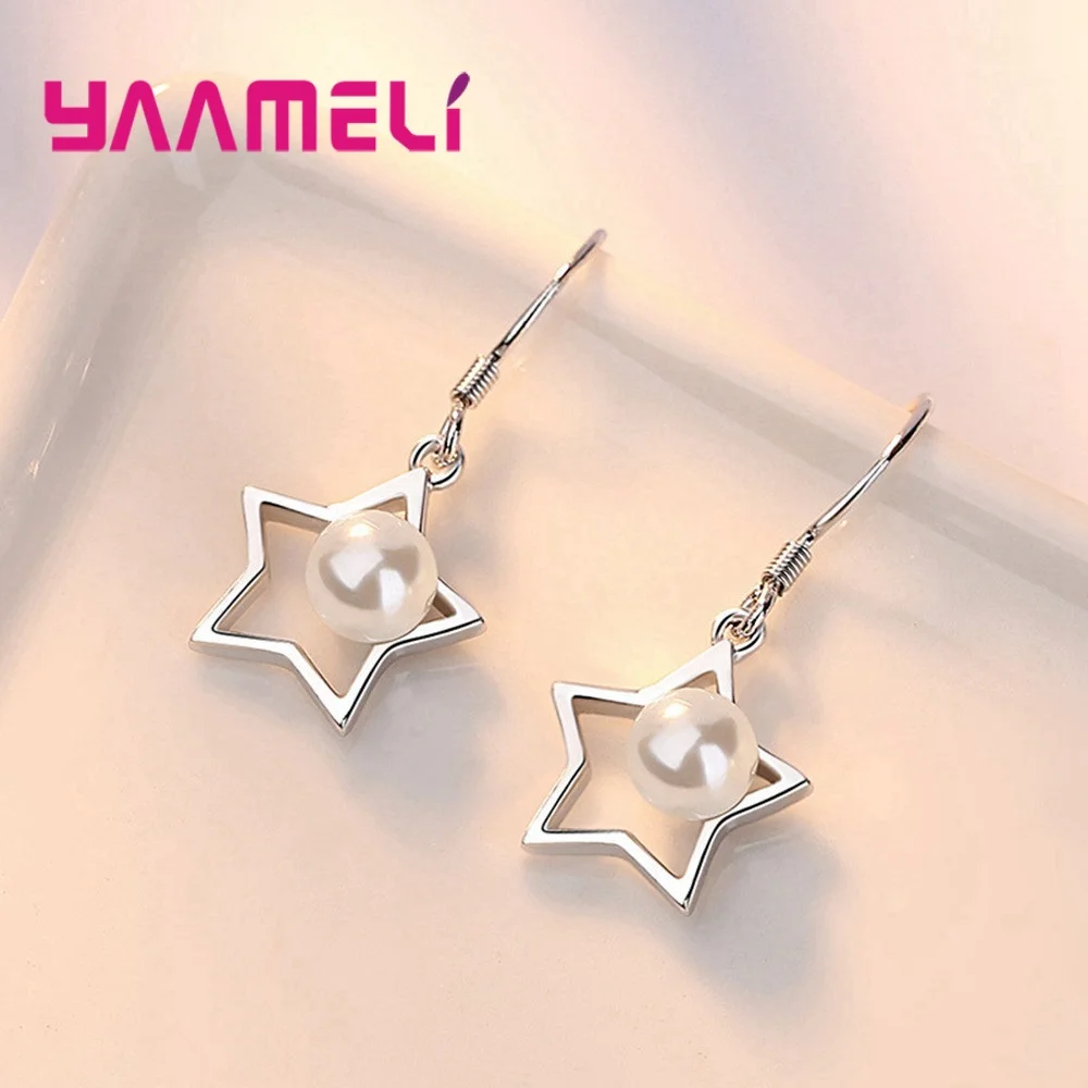 Красивые пятиконечные ювелирные изделия из стерлингового серебра 925 пробы с металлическим белым жемчугом, французские Серьги-Крючки для женщин, вечерние аксессуары для женщин