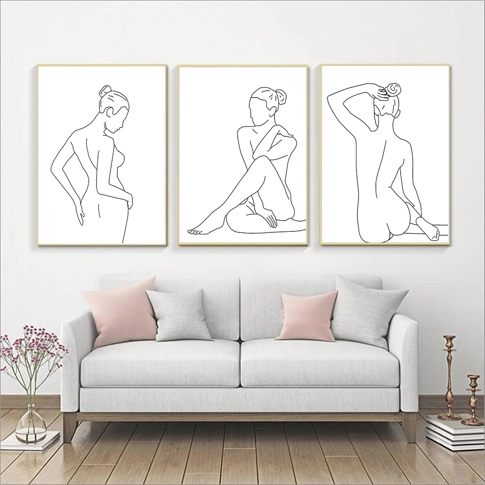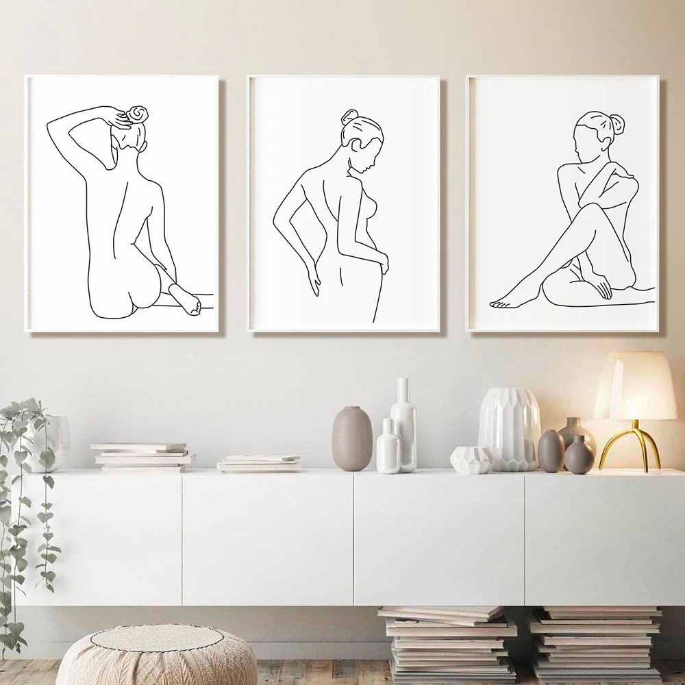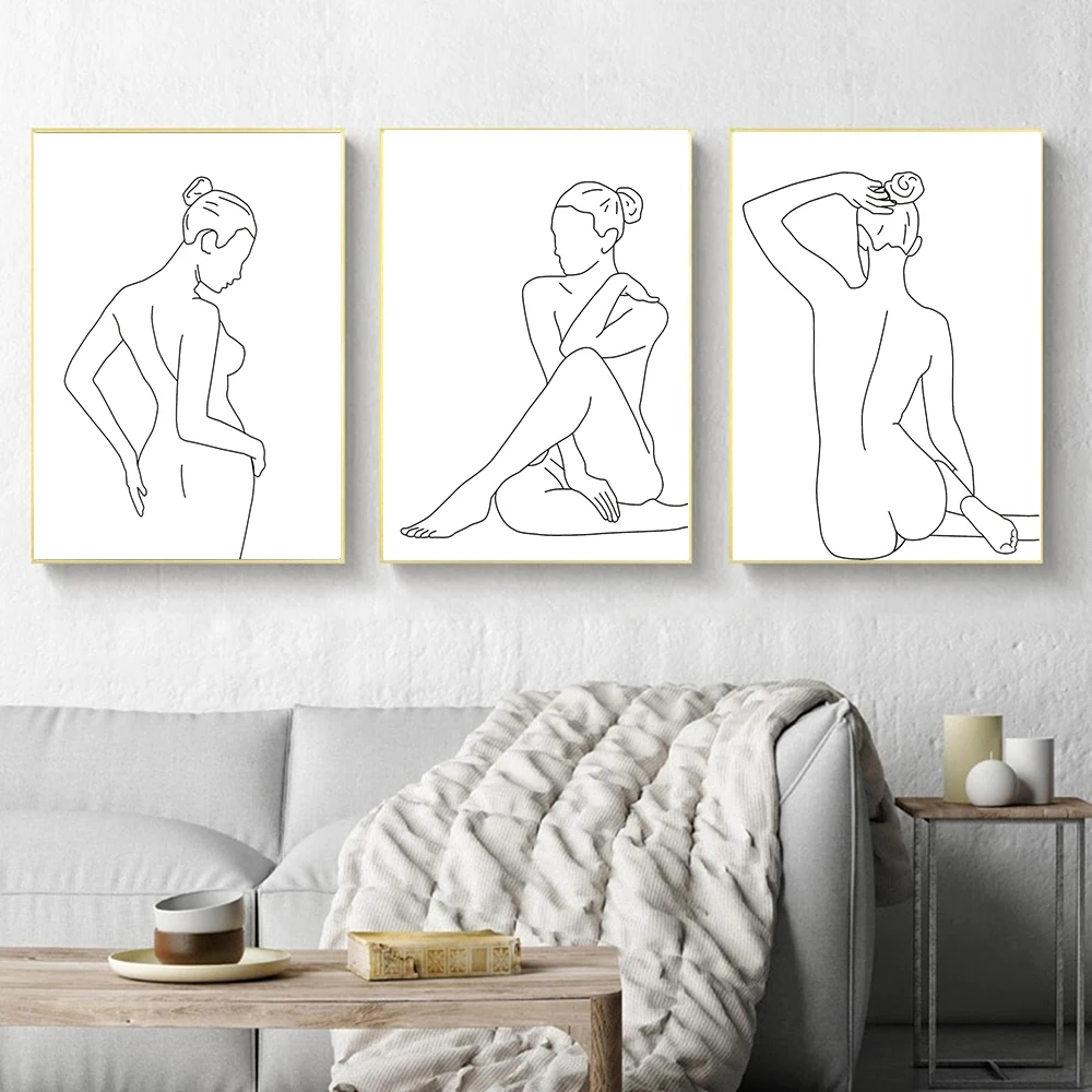 Женская обнаженная однолинейная картина для рисования, Скандинавская Картина на холсте, настенная фигурка, женское тело, минималистичные плакаты и принт для комнаты