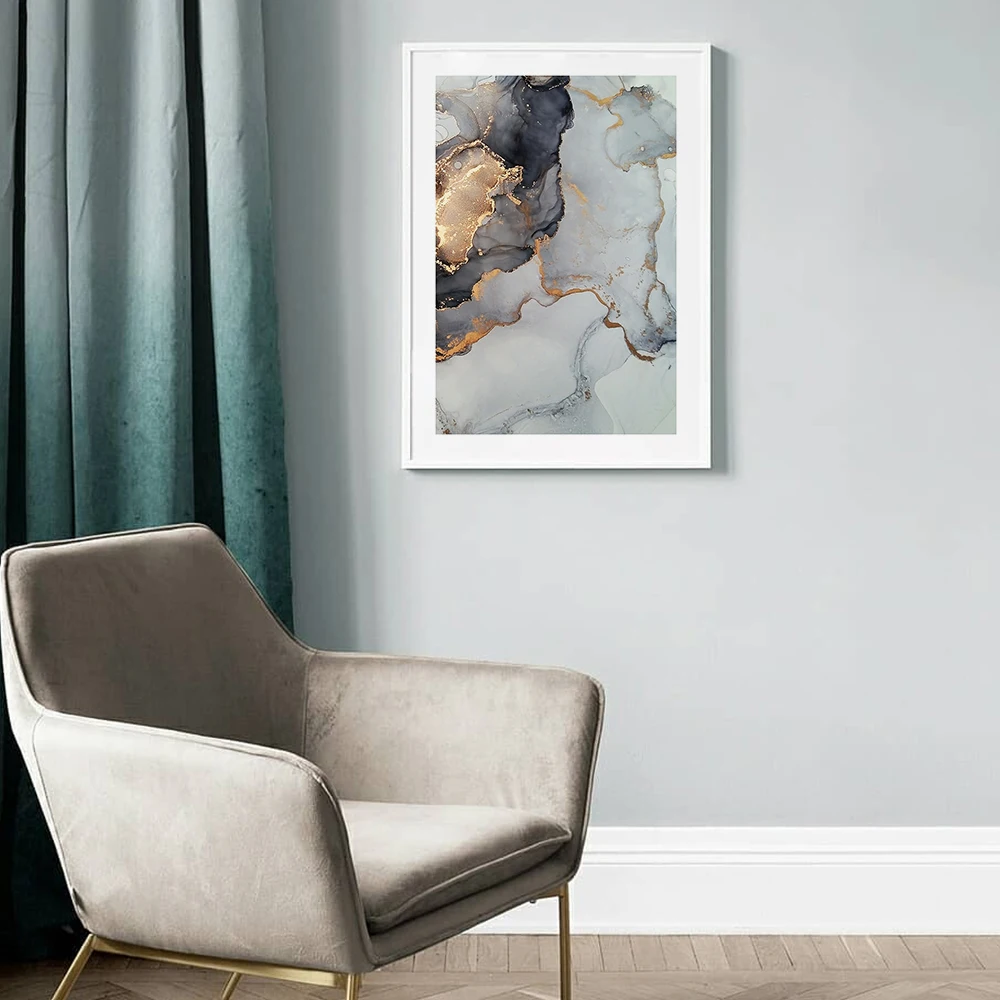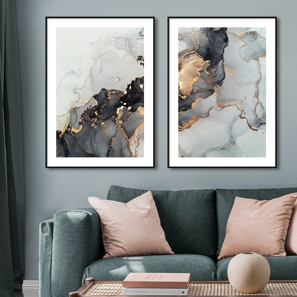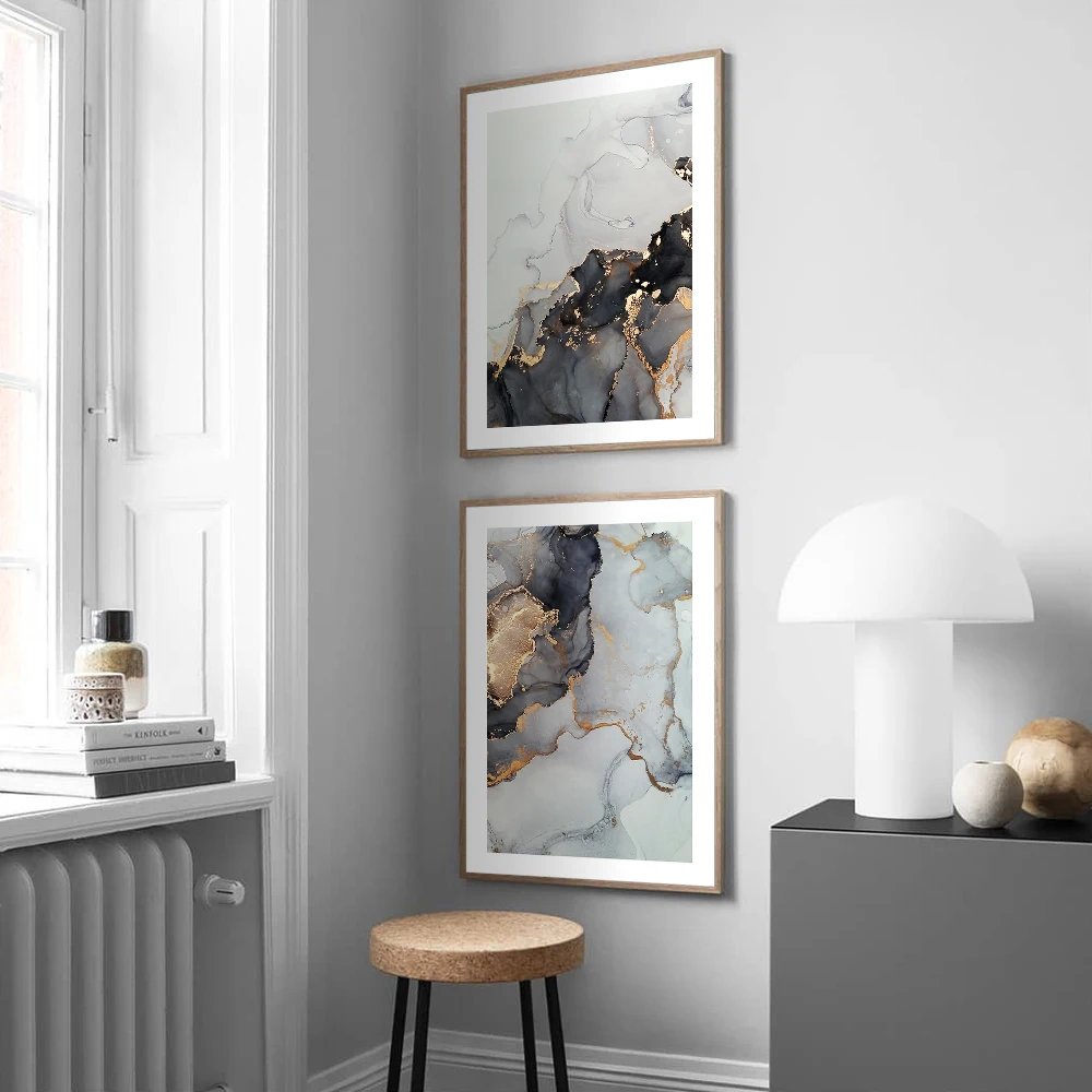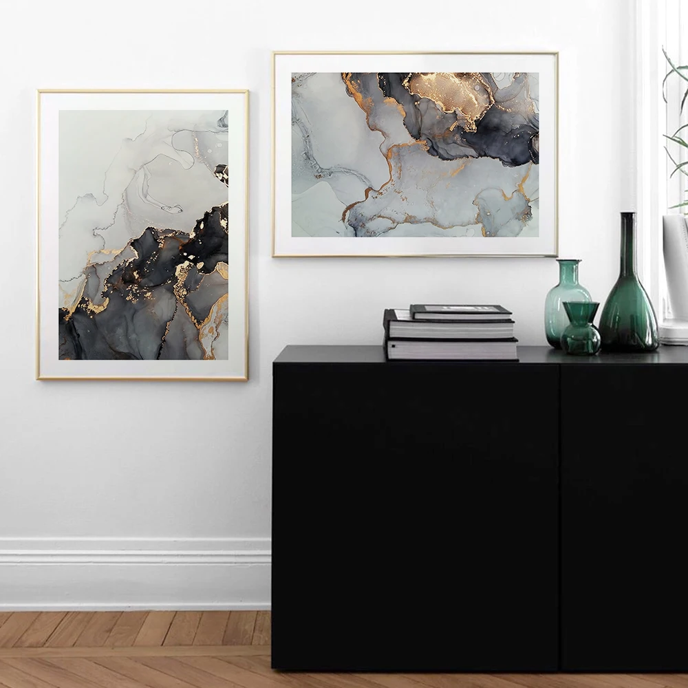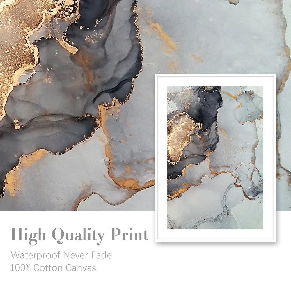Золотисто-серый мрамор Engulf живопись абстрактное искусство картина скандинавский холст печать галерея настенный постер домашний декор для коридора гостиной