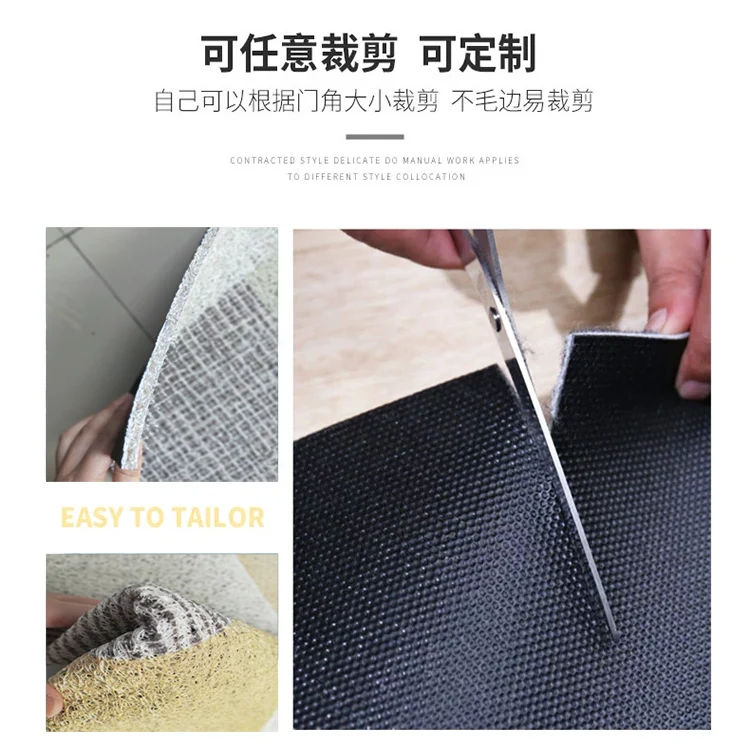 > Может быть настроен в соответствии с размером входа, пожалуйста, свяжитесь с нами, если вам нужно настроить. > Он изготовлен из экологически чистого материала и безвреден для людей. > Подошва изготовлена из противоскользящего материала, чтобы предотвратить скольжение коврика и защитить вашу безопасность, верхний материал может поглощать влагу от обуви, чтобы сделать полы чистыми и сухими, также удалите пыль, грязь, снег и т. д. > Можно свободно разрезать любые формы, которые вы хотите, и подходит для внутреннего и наружного входа, прихожей, гостиной, спальни, ванной комнаты и т. д. > Толщина составляет около 8 мм, он может полностью лежать на полу и не будет мешать открыванию и закрытию двери. > Когда коврик заполнен частицами грязи, вы можете просто очистить его с помощью пылесоса, или вы можете использовать садовый шланг на краску, затем дайте коврику полностью высохнуть на воздухе перед следующим использованием.