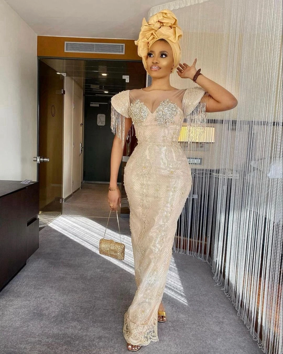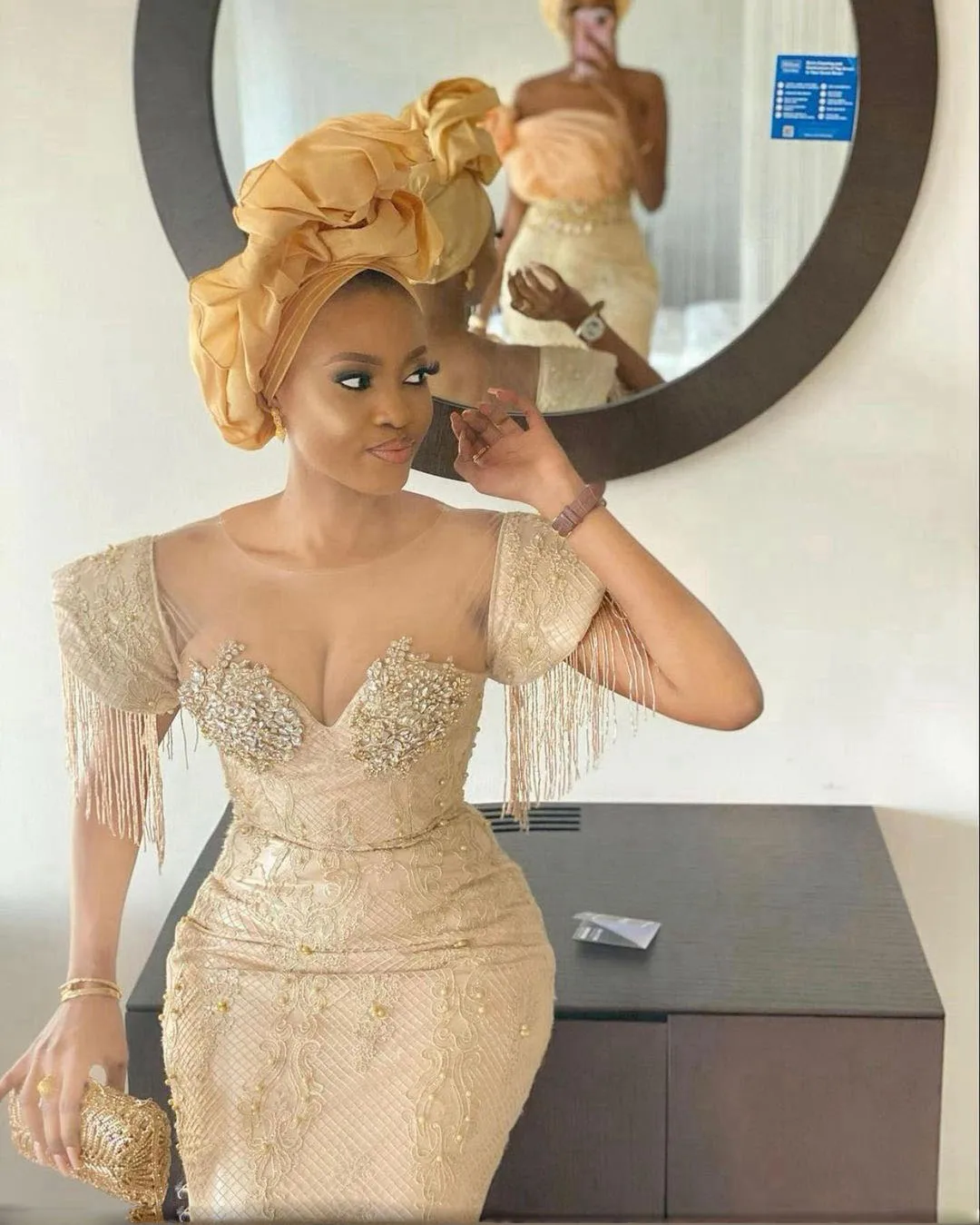 Великолепные вечерние платья цвета шампанского 2021, кружевное платье-футляр с кисточками Aso Ebi, платье для выпускного вечера, африканские женские вечерние платья, длинные платья