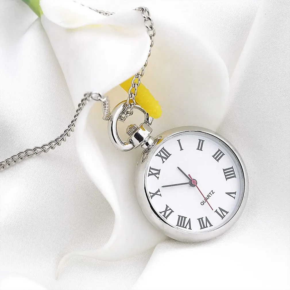 Модные кварцевые карманные часы в винтажном стиле длинная звеньевая цепь ожерелье Серебро Круглый Кулон Античная Стиль