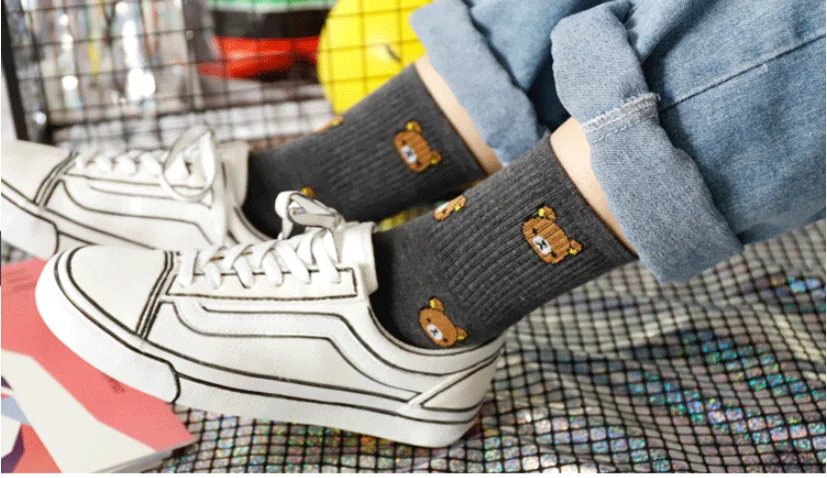 Женские Носки с рисунком медведя, хлопок красивые хлопковые носки, ...