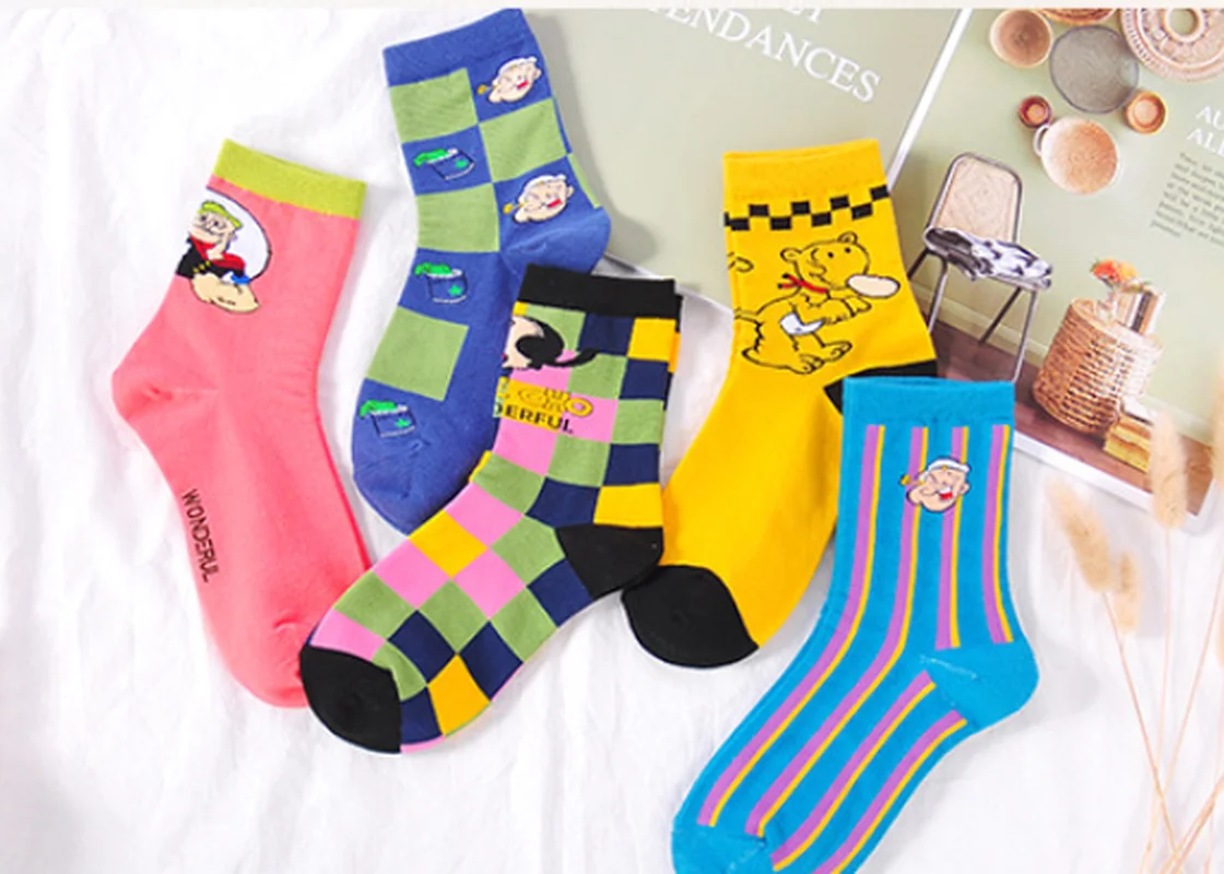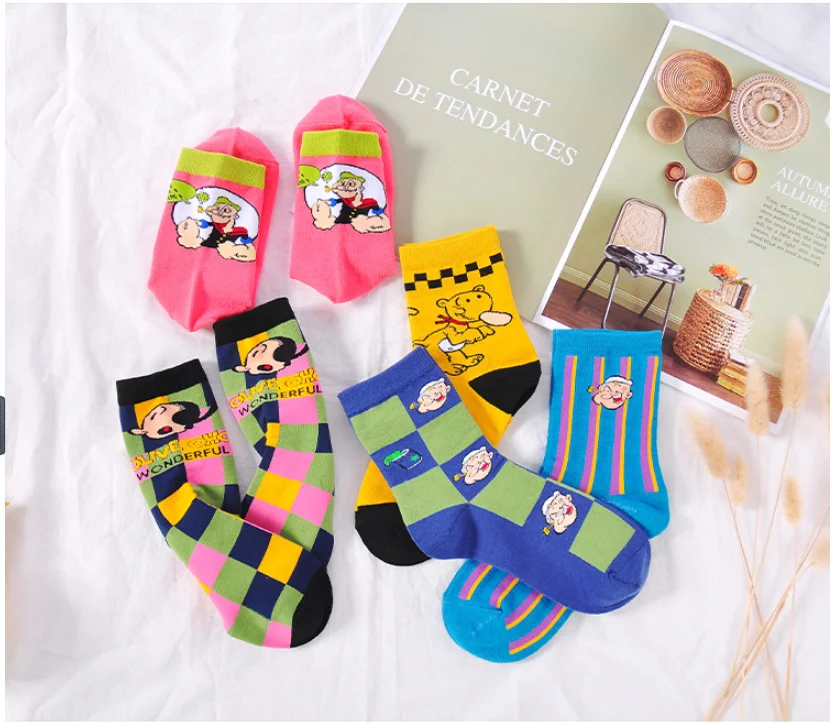 1 пара милых женских носков из чистого хлопка с героями мультфильмо...
