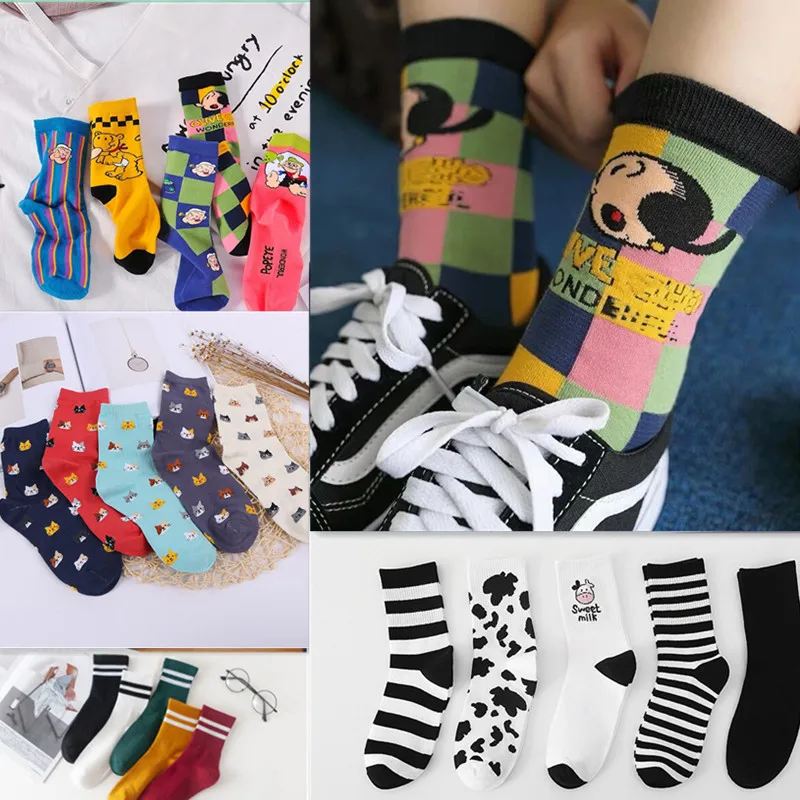 Носки средней длины в стиле Харадзюку С мультяшными мотивами животн...