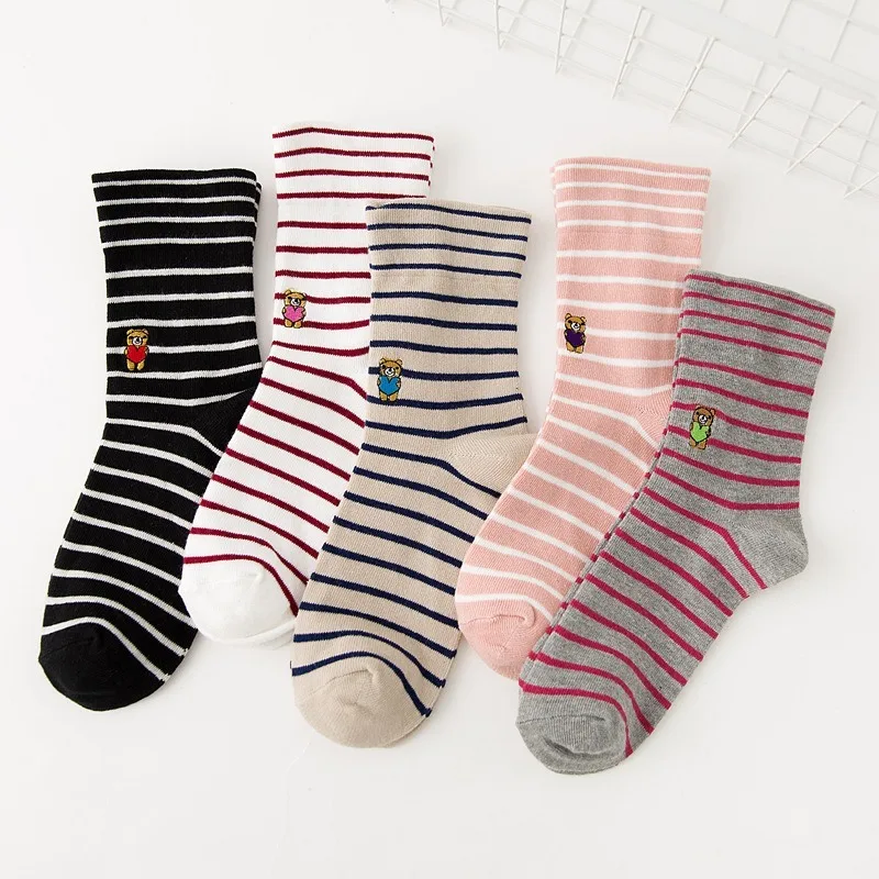 Модные носки с медведем, женские носки из чистого хлопка пяти цвето...