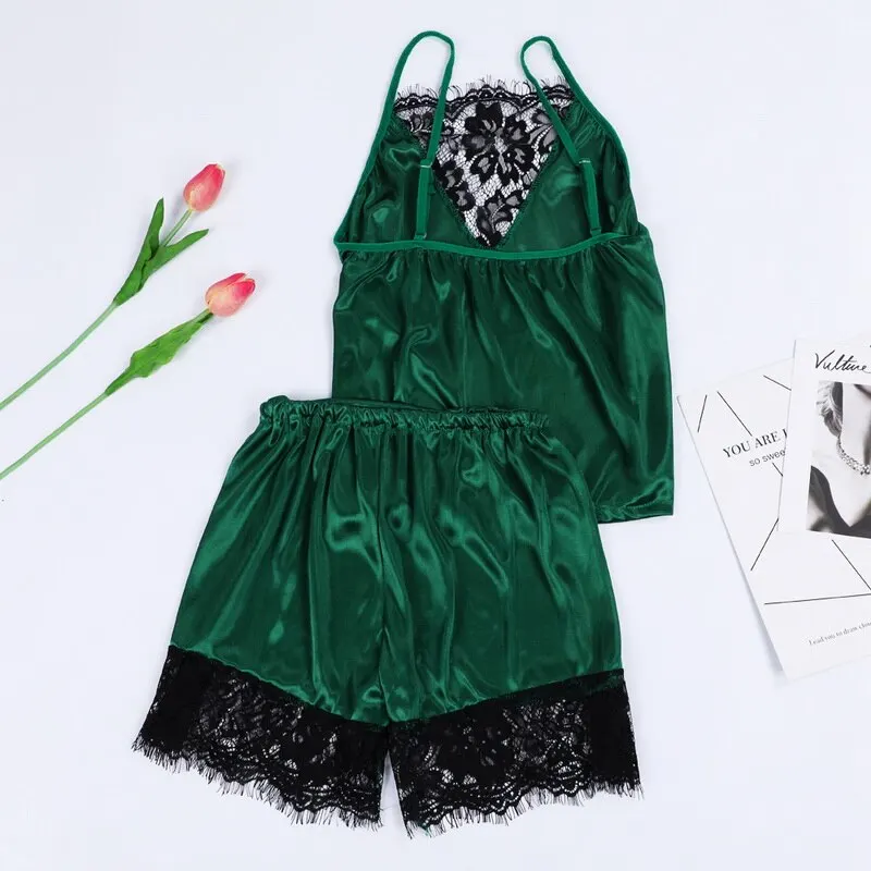 Сексуальные женские кружевные пижамные комплекты, 2020, без рукавов, на бретельках, пижамы, 2 шт., с отделкой, Атласный топ на бретельках, ночное белье, ночные рубашки, нижнее белье, пижама MujerПримечания:1. Пожалуйста, учитывайте разницу в 1-3 мм из-за ручного измерения, спасибо за понимание!2. Из-за разницы между различными мониторами, пожалуйста, поймите, что изображение может не отражать фактический цвет товара.