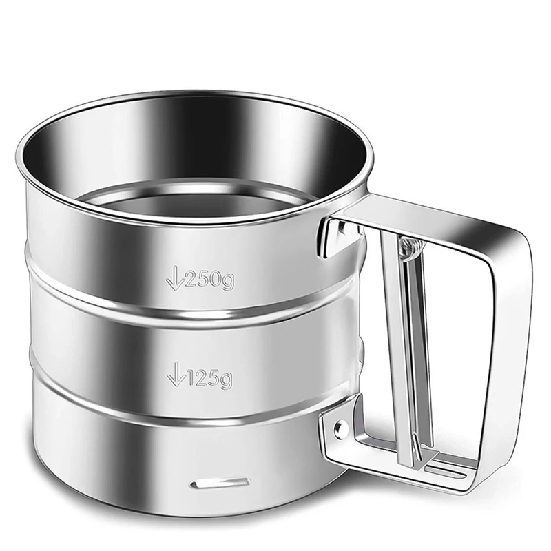 Полуавтоматическое сито для муки из нержавеющей стали, кухонные инструменты, гаджеты, ручное сито для выпечки просеиватель для сахара