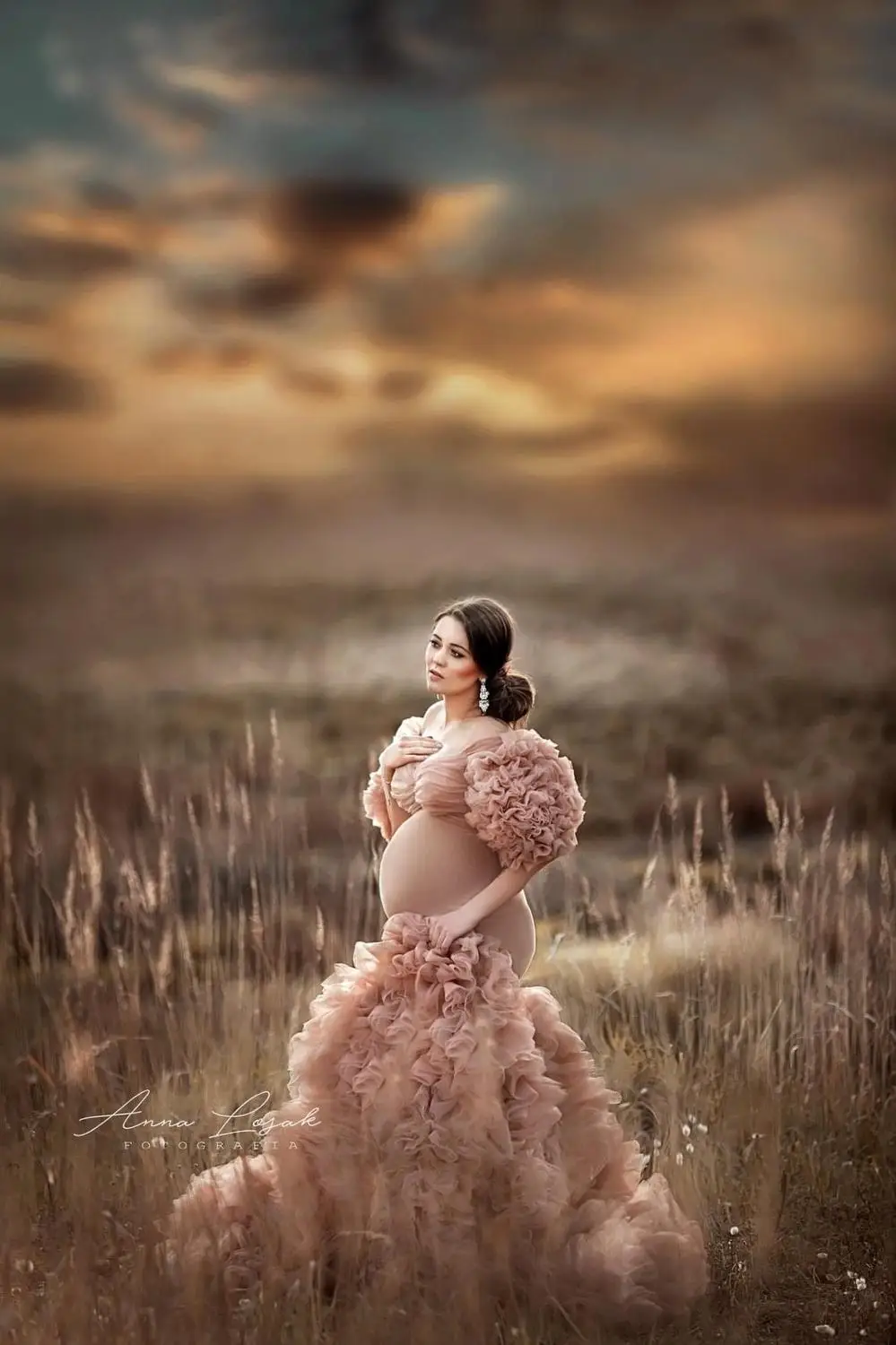 Пышное Тюлевое платье с оборками в несколько рядов женское платье для беременных великолепное Пышное длинное платье для фотосессии с рукавом до локтя