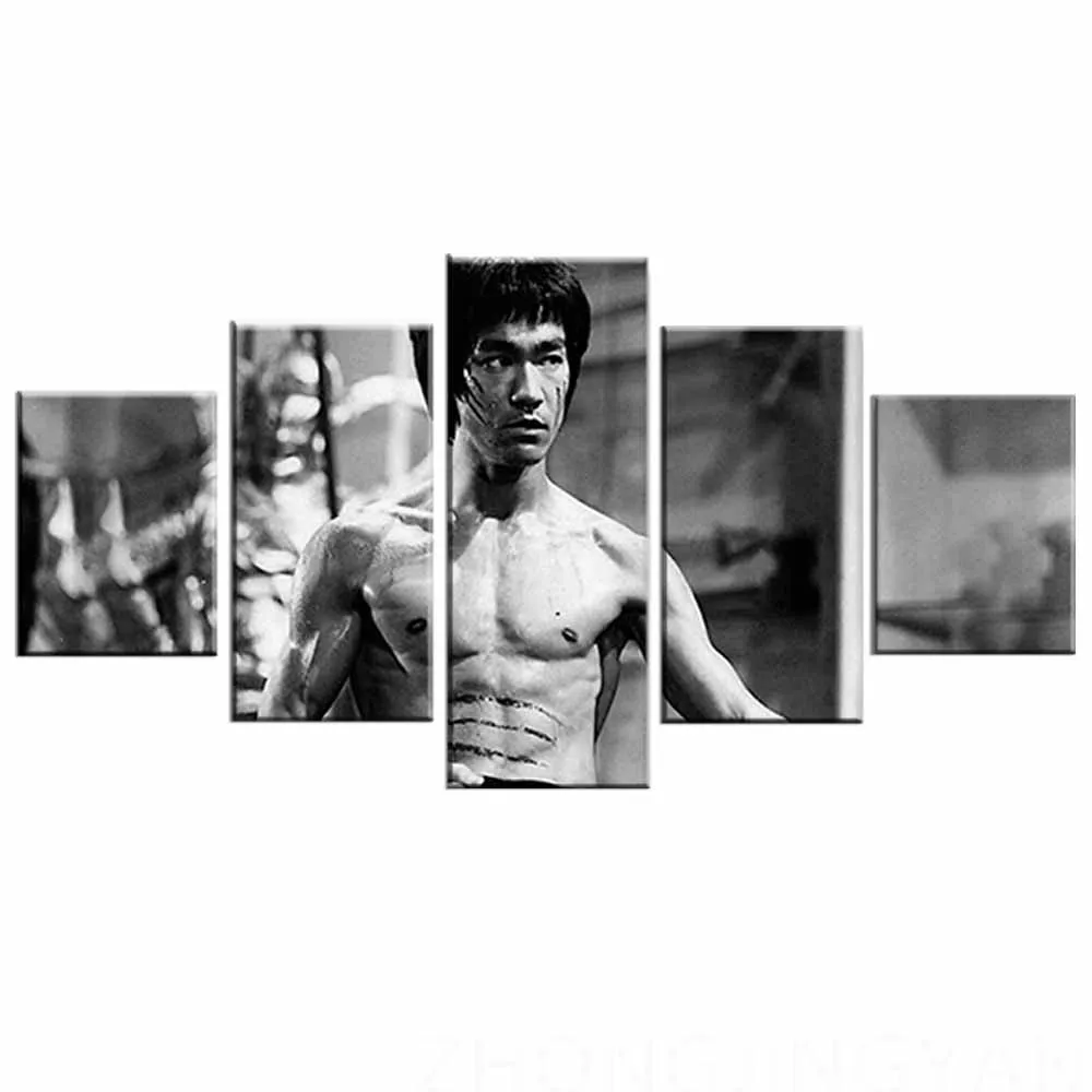 Большой постер, HD печатная Картина на холсте, 5 панелей, кунг-фу, суперзвезда, Брюс Ли, домашний декор, настенные картины для гостиной