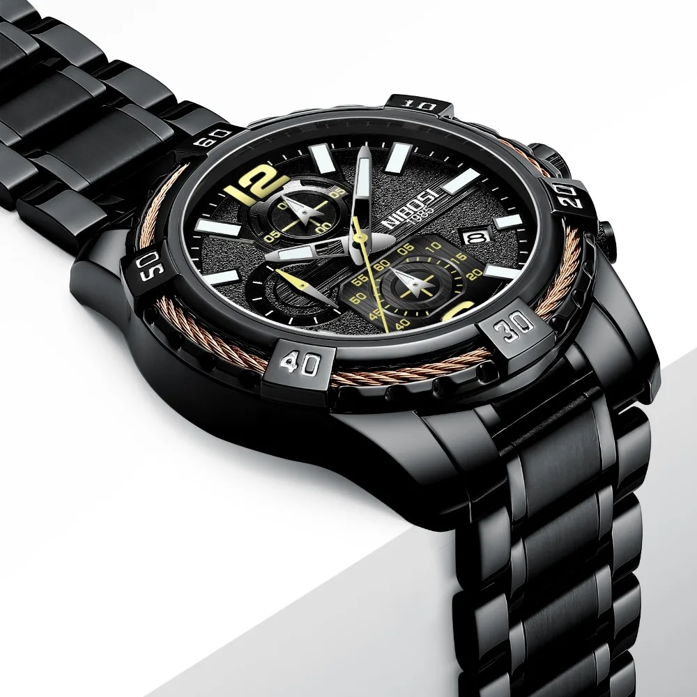 Мужские кварцевые часы-хронограф NIBOSI с ремешком из нержавеющей с...