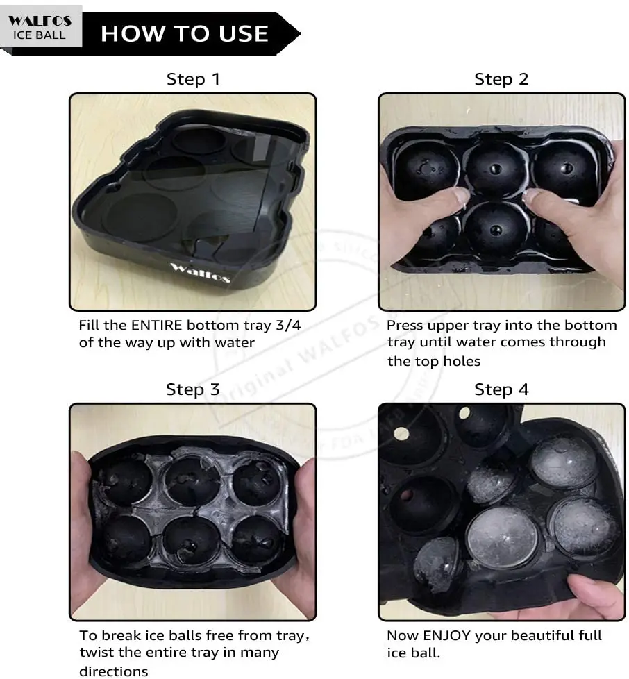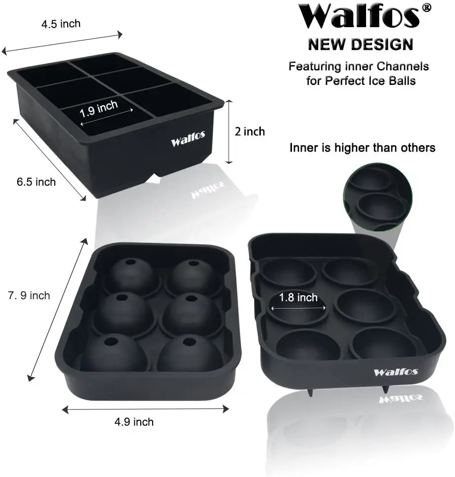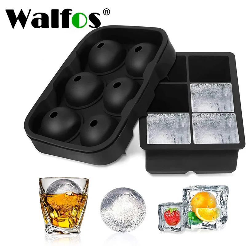 WALFOS виски коктейльный большой ледяной куб лоток 6 отверстий ледяной куб форма круглая форма ледяной шар чайник силиконовая форма для льда Бар