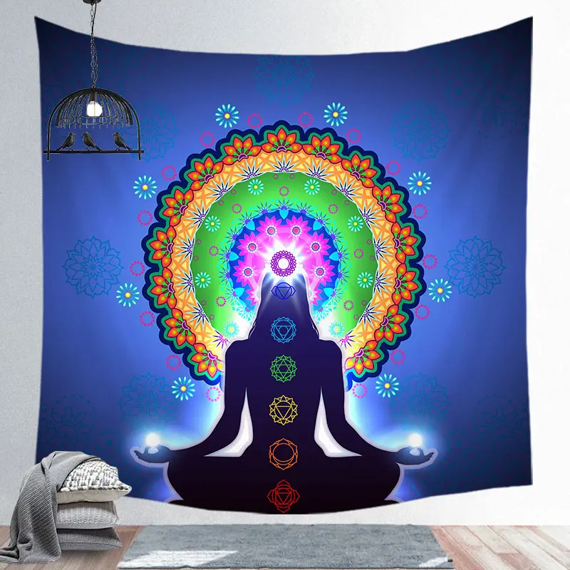 Горячая медитация семь чакр гобелен индийский Будда настенное украш...