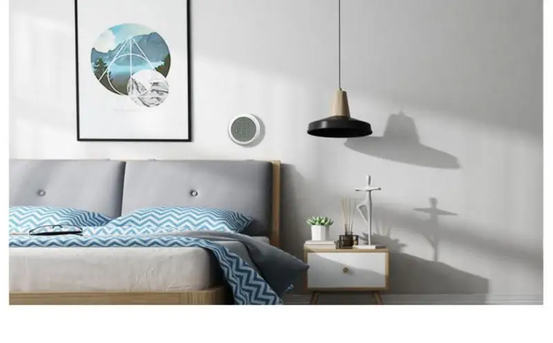 Восприятие температуры и влажности в помещении, динамический экран Icd отображает значения в реальном времени, передает комфорт домашней среды, но также с помощью шлюза и облачной платформы стыковки, мобильное приложение для просмотра текущих и исторических данных о температуре и влажности.