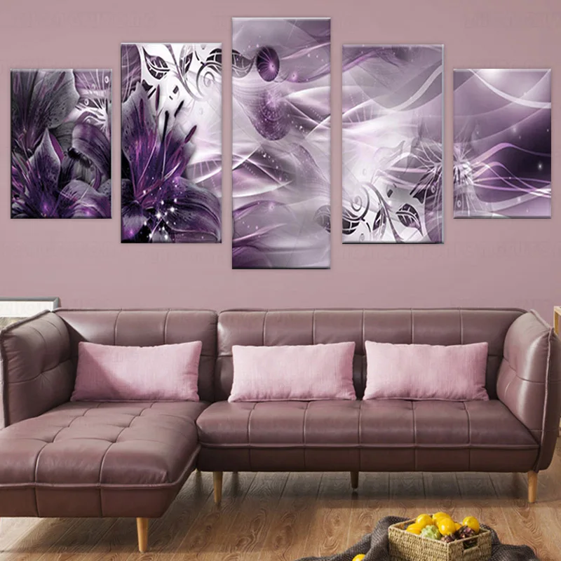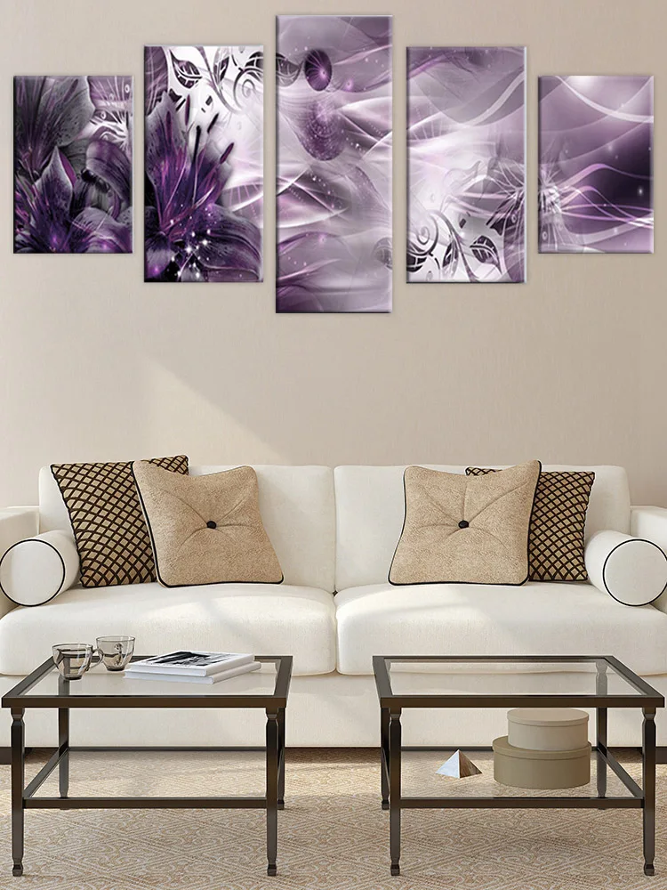 Искусство с фиолетовыми цветами, 5 шт., абстрактные картины на холсте, настенные картины для украшения дома