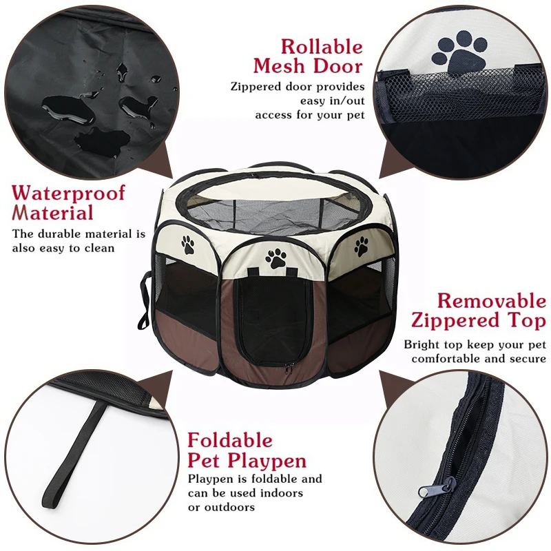 Складная палатка для домашних животных, домик для собаки, восьмиугольная клетка для кошек, манеж для дома, Конура для щенков, кошек, удобство в эксплуатации, переносная клетка для питомцев