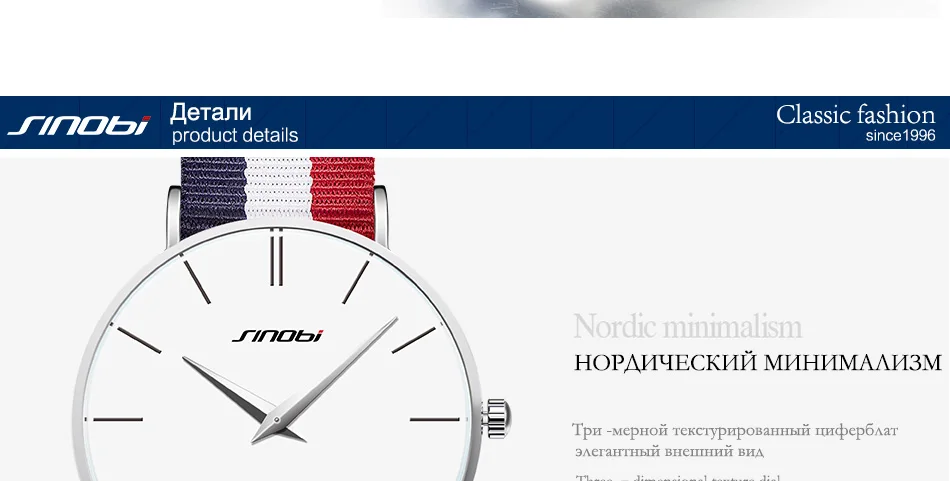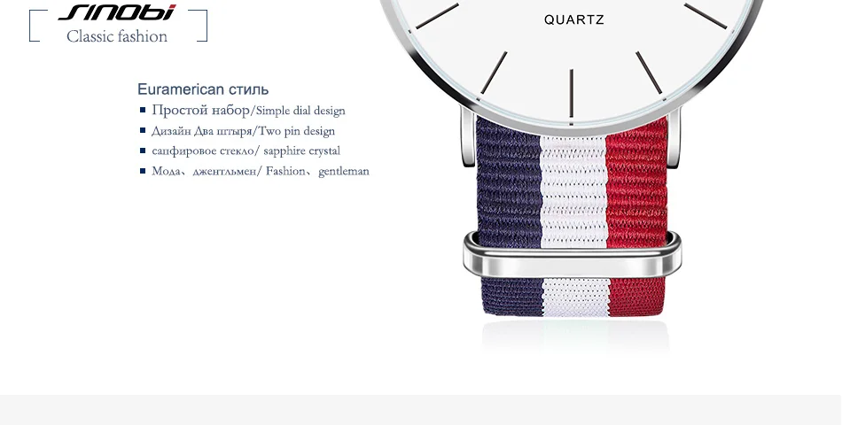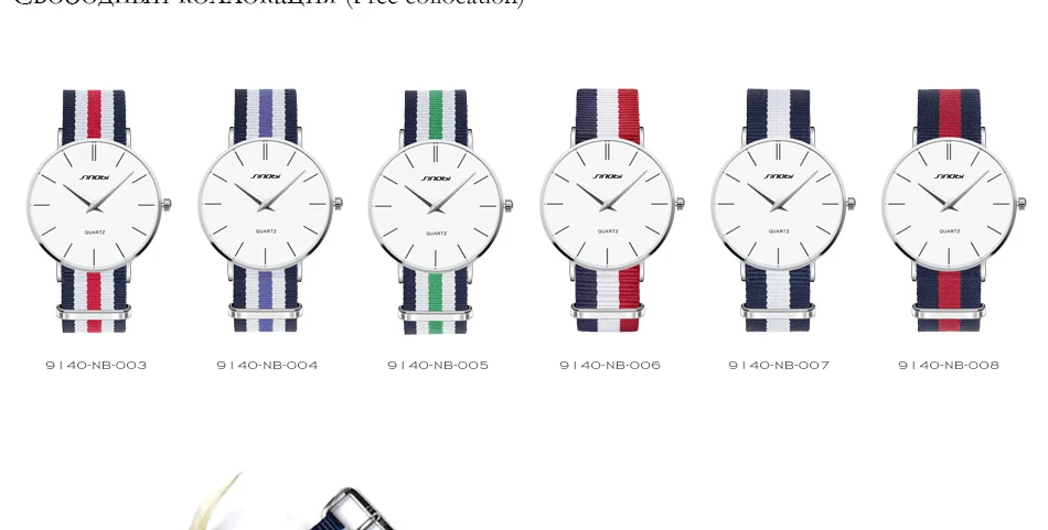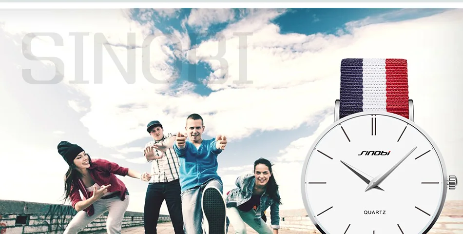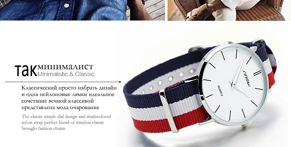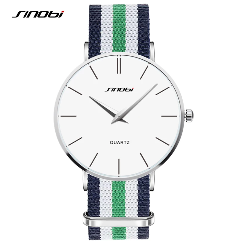 Часы наручные SINOBI Мужские ультратонкие, роскошные брендовые модные ультратонкие кварцевые с прочным нейлоновым ремешком, в стиле унисекс, 2021